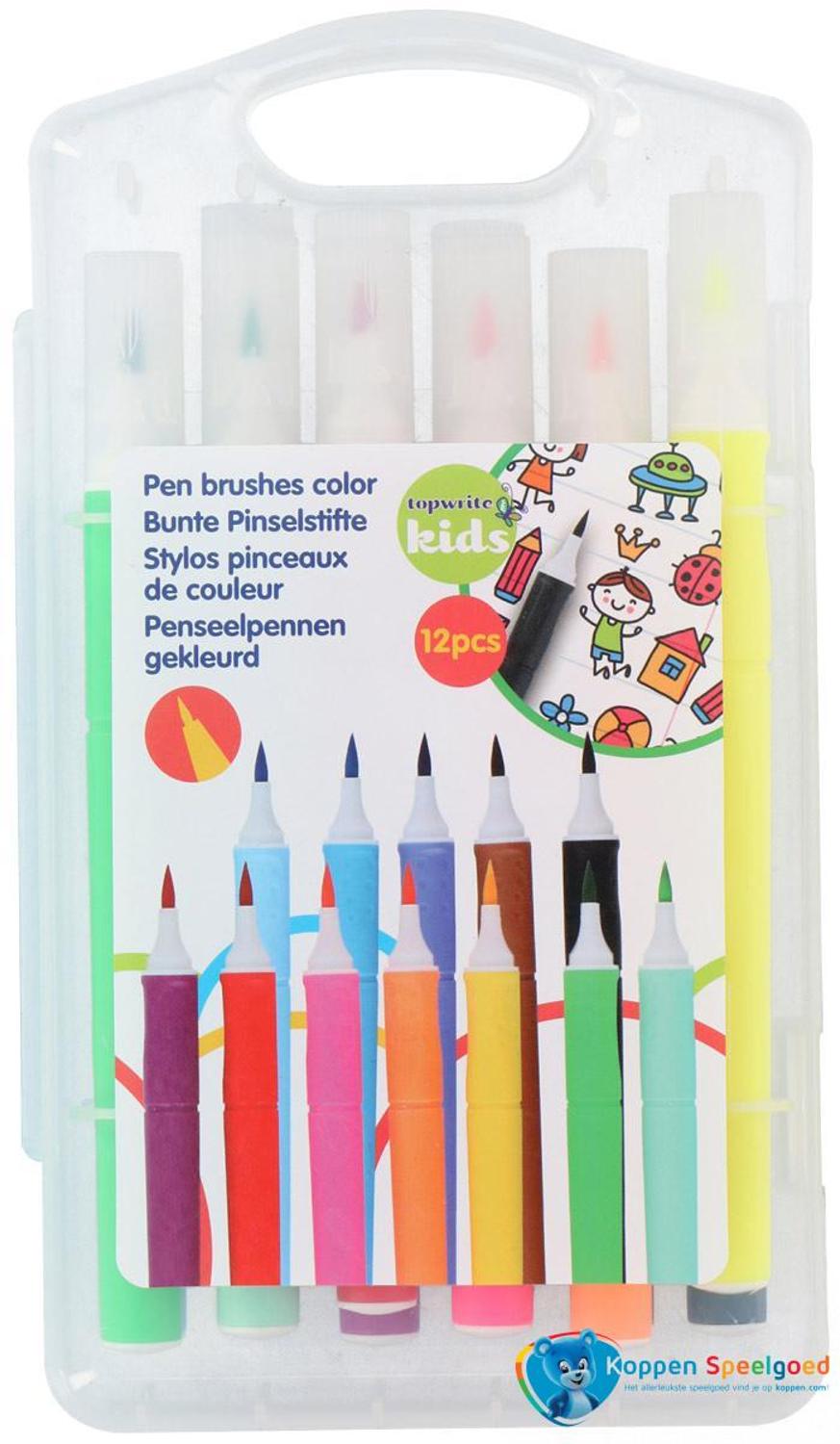 12 mooie penseelpennen in verschillende kleuren om kunstwerken mee te maken. In een handig bewaar etui.