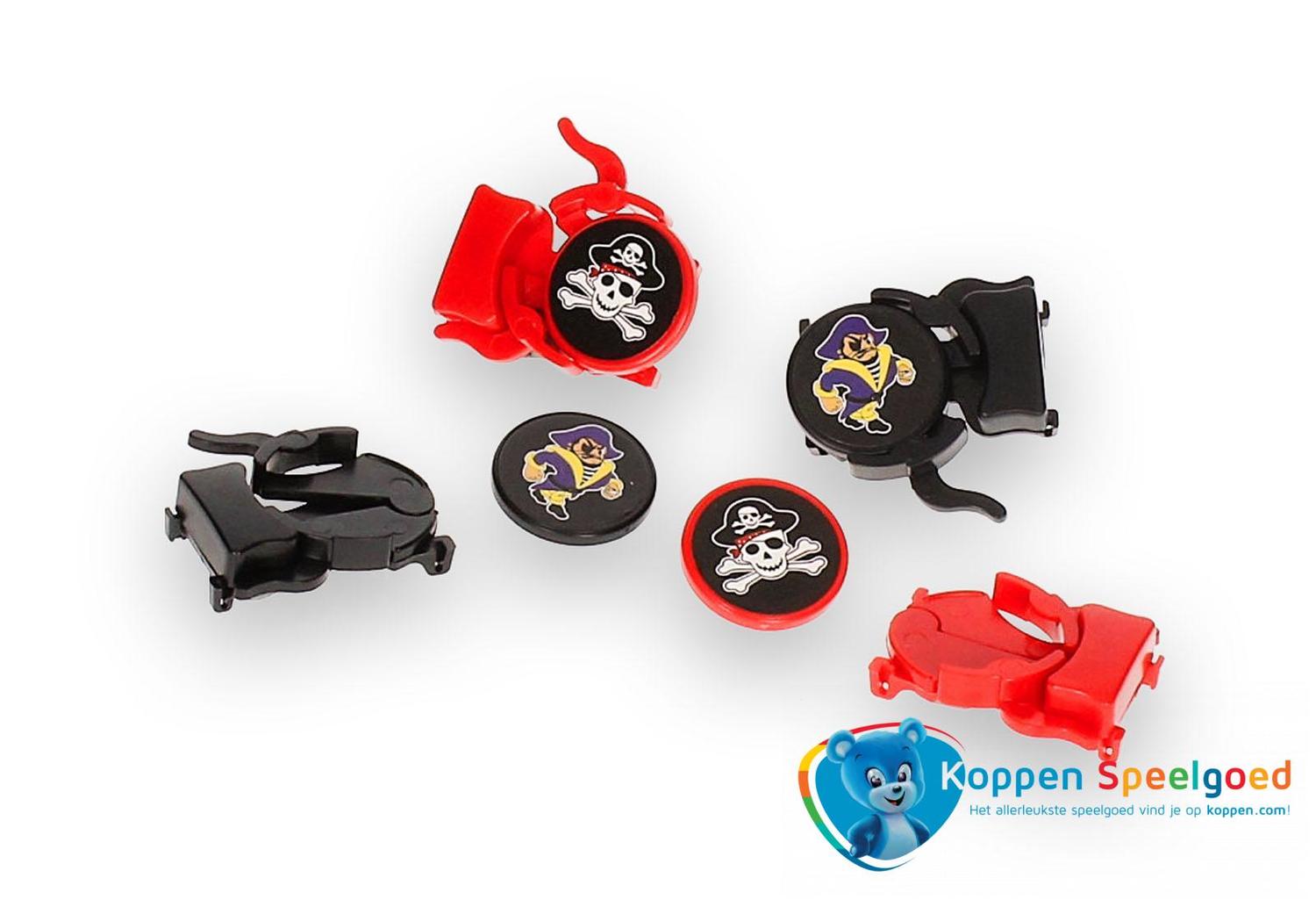 Afschietschijf piraat. Stop het schijfje in de afschieter en probeer zo ver mogelijk te schieten. Leuk cadeau voor in de grabbelton. Geschikt voor de echte piraat vanaf drie jaar. De verschillende kleuren worden door elkaar geleverd.