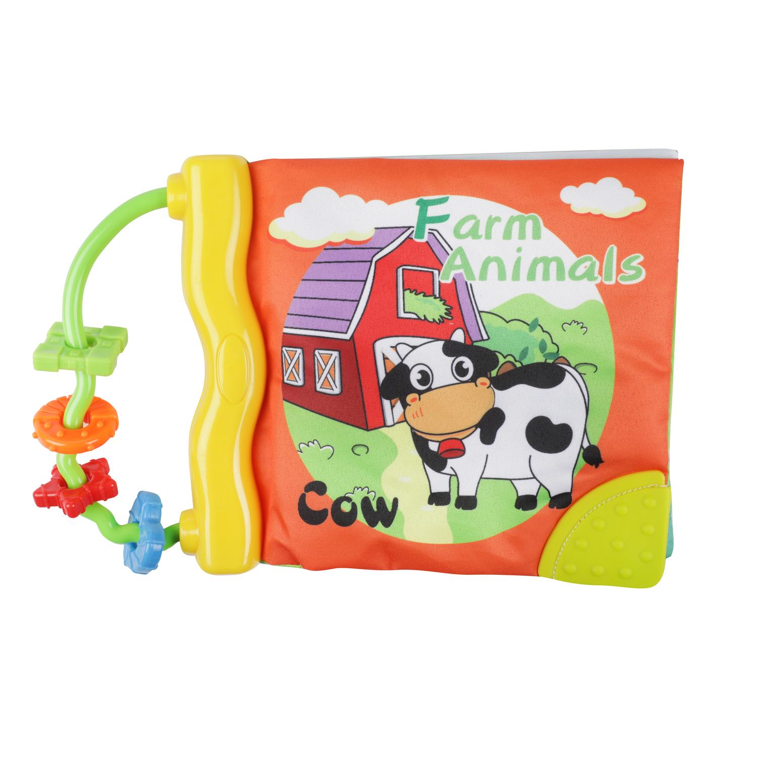 Een leuk, stoffen knisperboekje voor je kind met een rammelaar eraan.