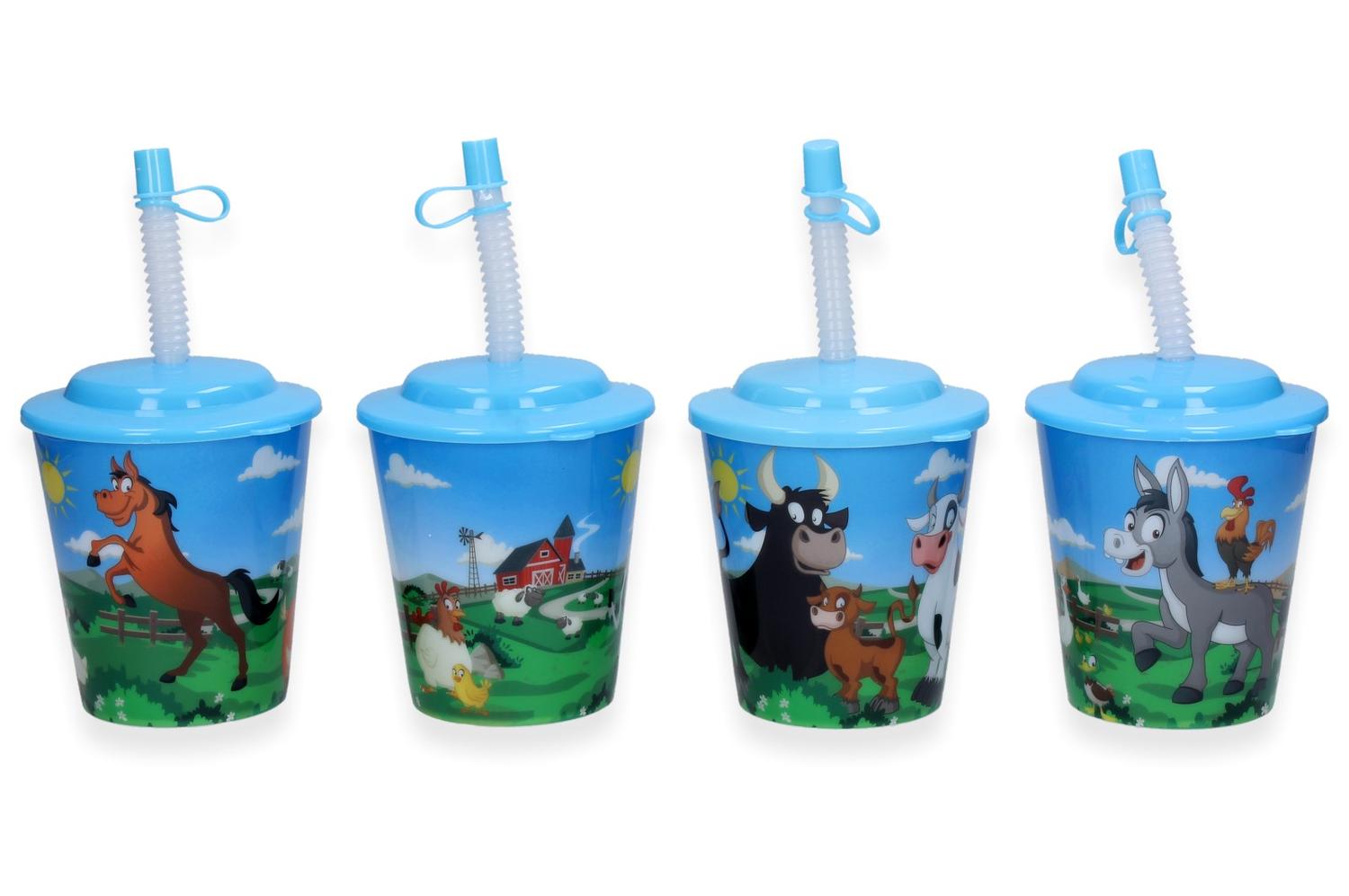 Deze drinkbekers hebben een print in het thema van boerderijdieren op het platte land.