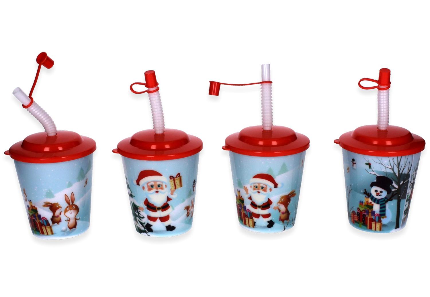 Deze drinkbekers hebben een print in het thema van kerst in een kerstwereld met allerlei kerstfiguren.