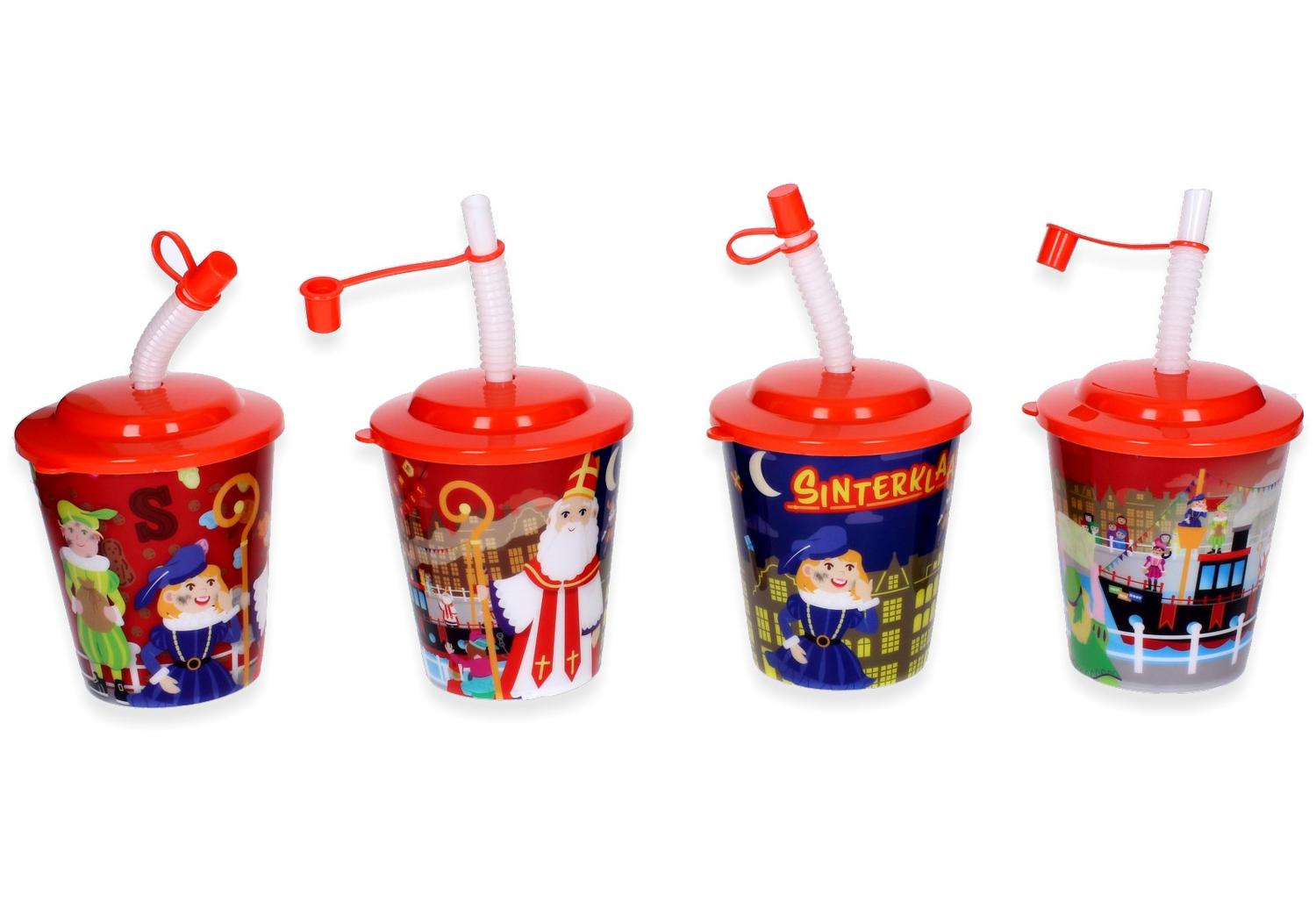 Deze drinkbekers hebben een print in het thema van Sinterklaas.