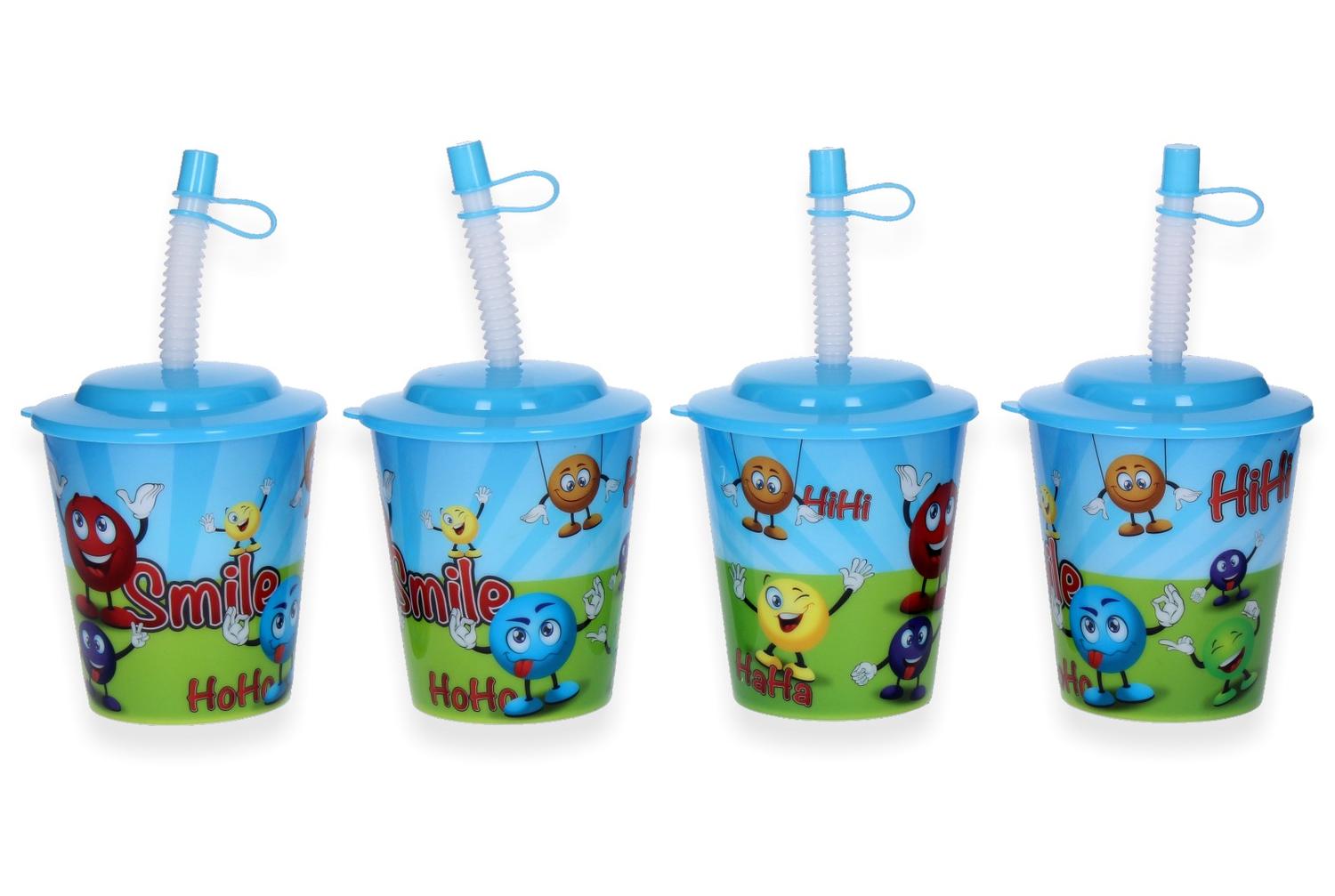 Beker met deksel met rietje, smile. Deze set bestaat uit een beker, deksel en een rietje. De inhoud van de beker is 240 ml. Leuk voor bij feestjes.