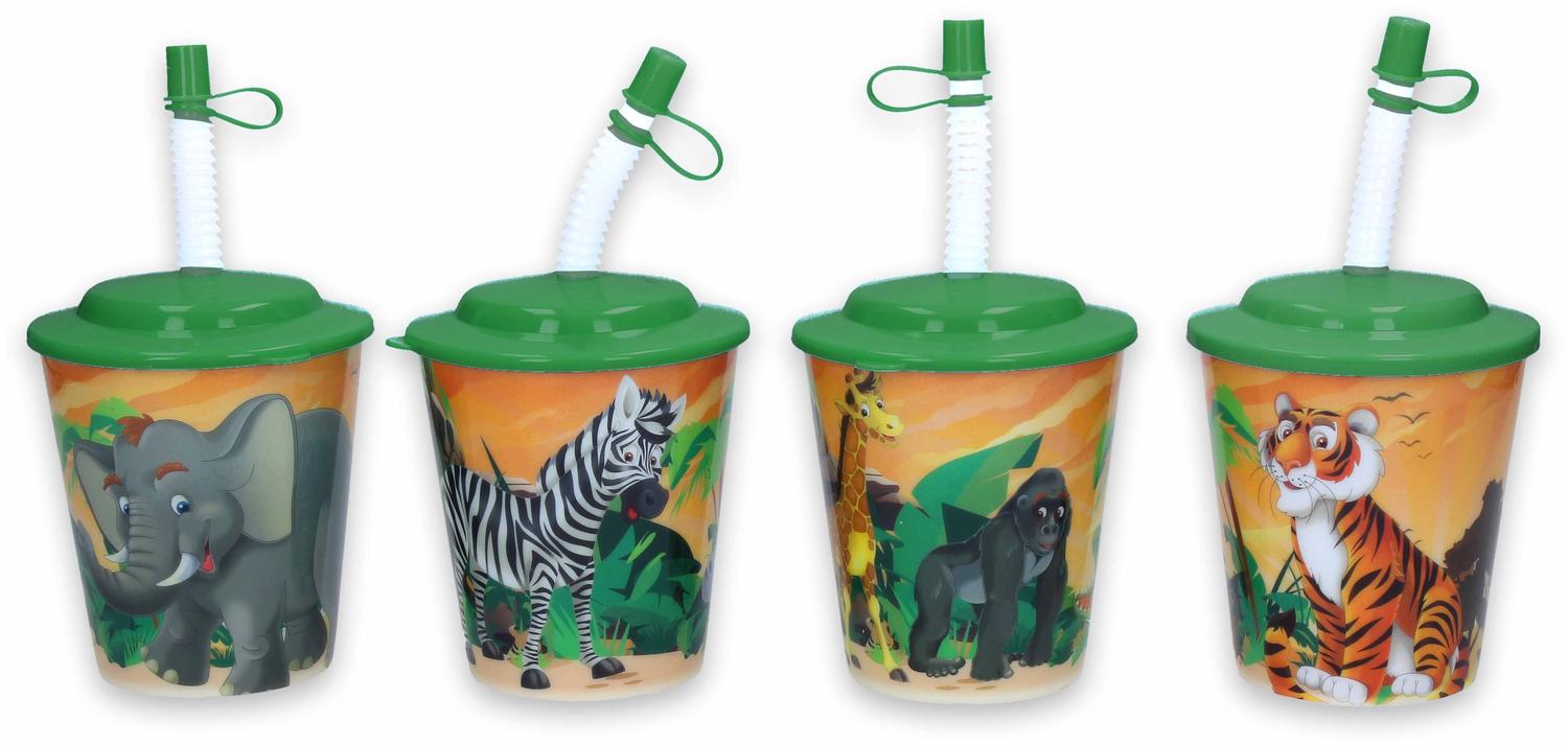 Beker met deksel met rietje, wilde dieren. Deze set bestaat uit een beker, deksel en een rietje. De inhoud van de beker is 240 ml. Leuk voor bij feestjes.