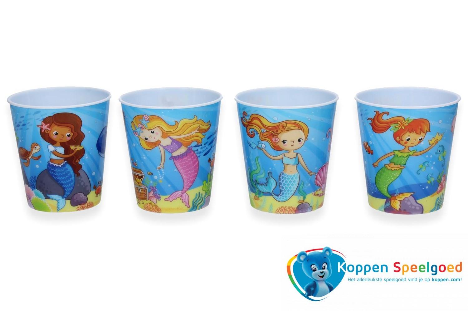 Deze drinkbekers hebben een print in het thema van zeemeerminnen in een onderwaterlandschap met allerlei zeedieren.