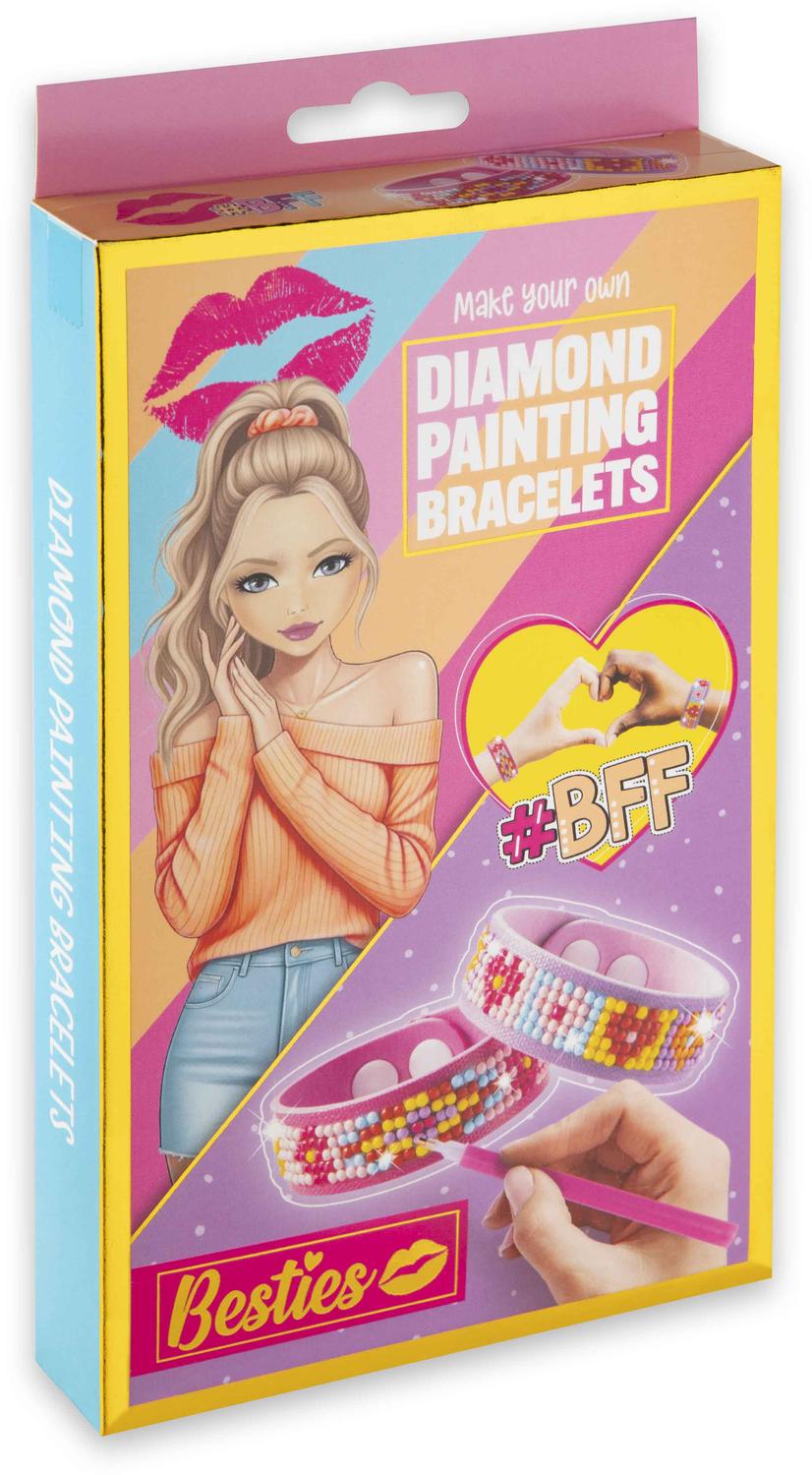 Maak je eigen BFF vriendschapsarmbandjes met deze mooie Besties diamond painting set! Leuk om te maken en als cadeautje te geven aan je bestie, of om lekker samen mee aan de slag te gaan. De knutselset bevat 2 polsbandjes met drukknoopsluiting, plaksteentjes, een pennetje en een tray. Geschikt voor kinderen van 6 jaar en ouder.