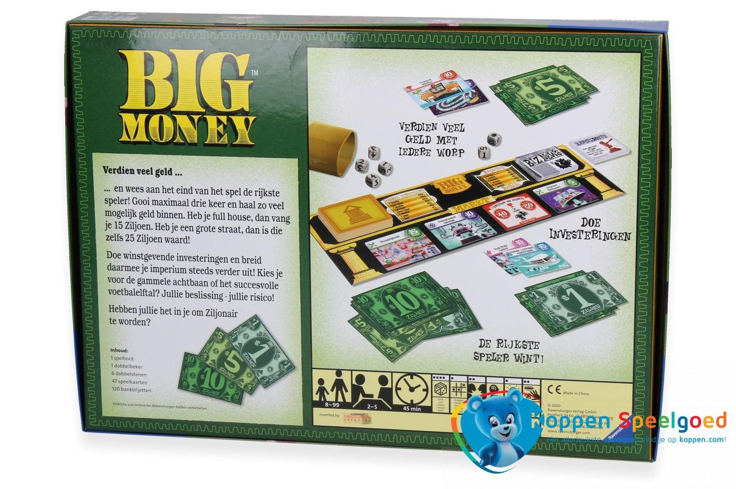 Verdien veel geld, en wees aan het eind van het spel Big Money de rijkste speler! Gooi maximaal drie keer en haal zo veel mogelijk geld binnen. Heb je full house, dan vang je 15 Ziljoen. Heb je een grote straat, dan is die zelfs 25 Ziljoen waard! Doe winstgevende investeringen en bouw daarmee je imperium steeds verder uit! Kies je voor de gammele achtbaan of het succesvolle voetbalelftal? Jouw beslissing - jouw risico!