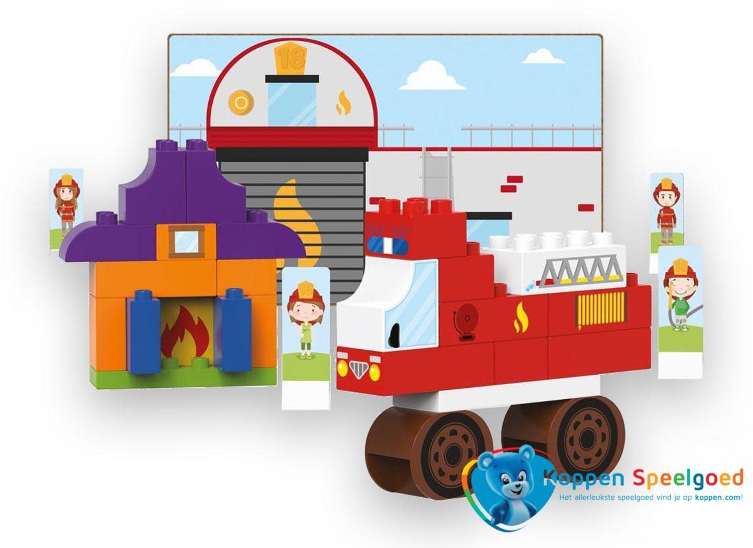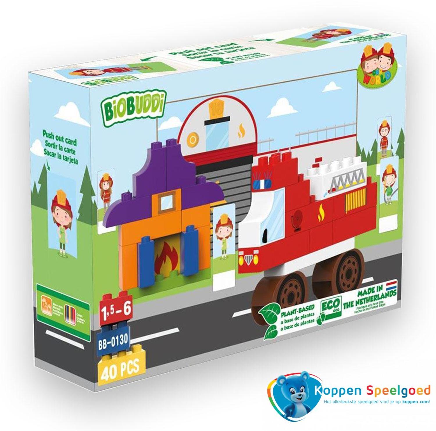 Set van BioBuddi met een brandweerkazerne, 40 stukjes, voor kinderen van 1,5 tot 6 jaar.