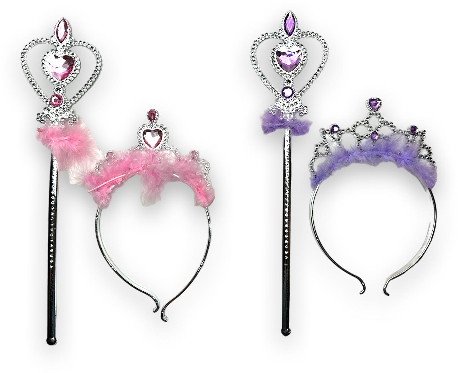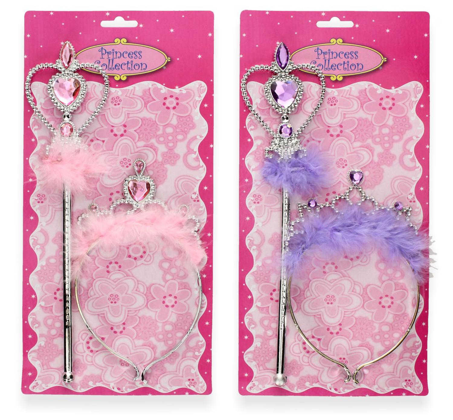 Een leuk kroontje met bijbehorende staf, perfect om je prinsessenoutfit af te maken. Ook leuk om te verkleden tijdens een thema feest of carnaval.