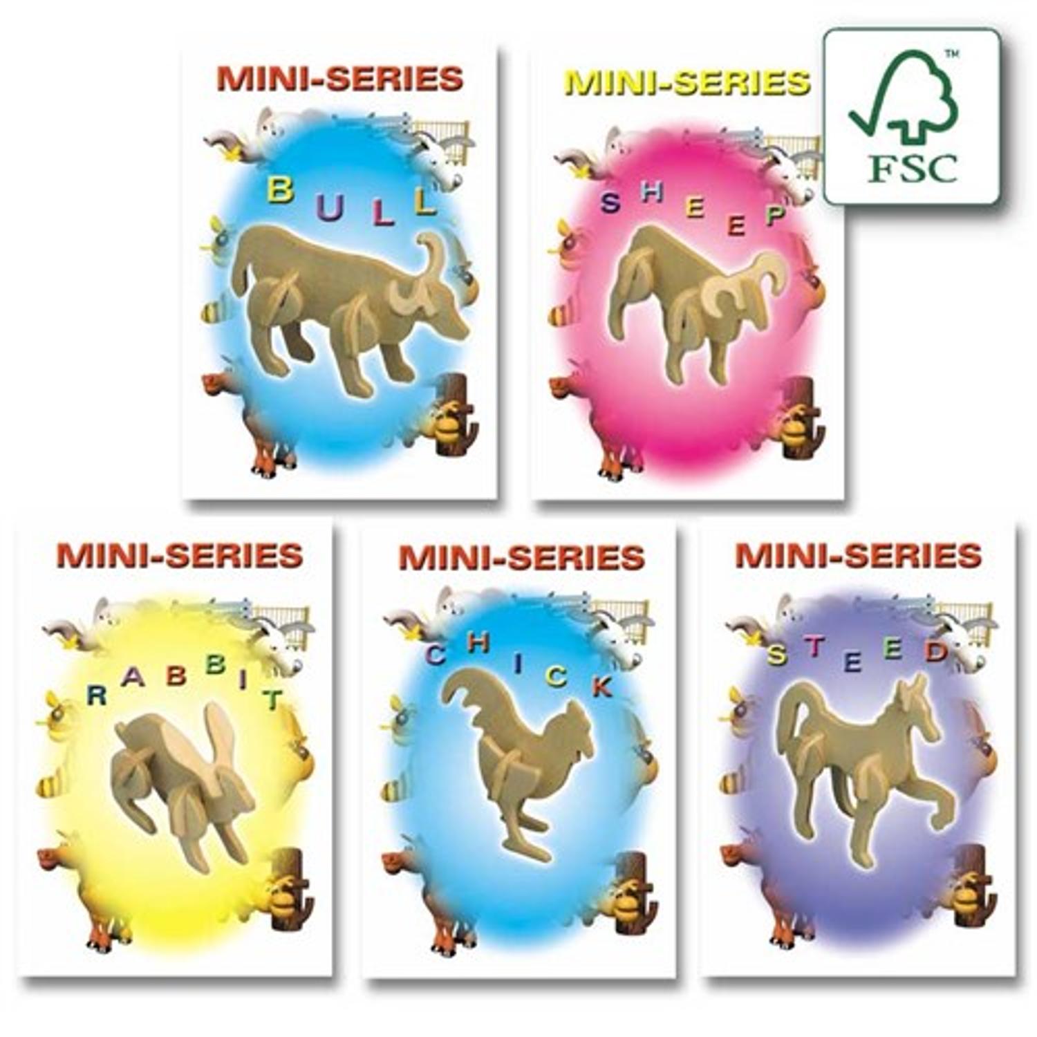 Bouwpakket mini serie: 3D boerderij dieren. Dit artikel is gemaakt van FSC hout. Vijf verschillende bouwpakketjes om leuke boerderij dieren in elkaar te zetten.