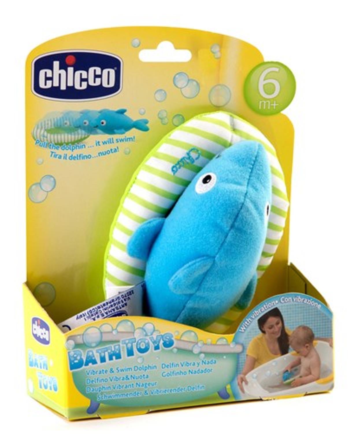 Chicco Dolfijn tril en zwem. Trek de dolfijn naar achteren en hij zwemt terug het vlot op. Geschikt voor baby en peuter vanaf zes maanden. Ontwikkelt de manuele coördinatie en tastzin.