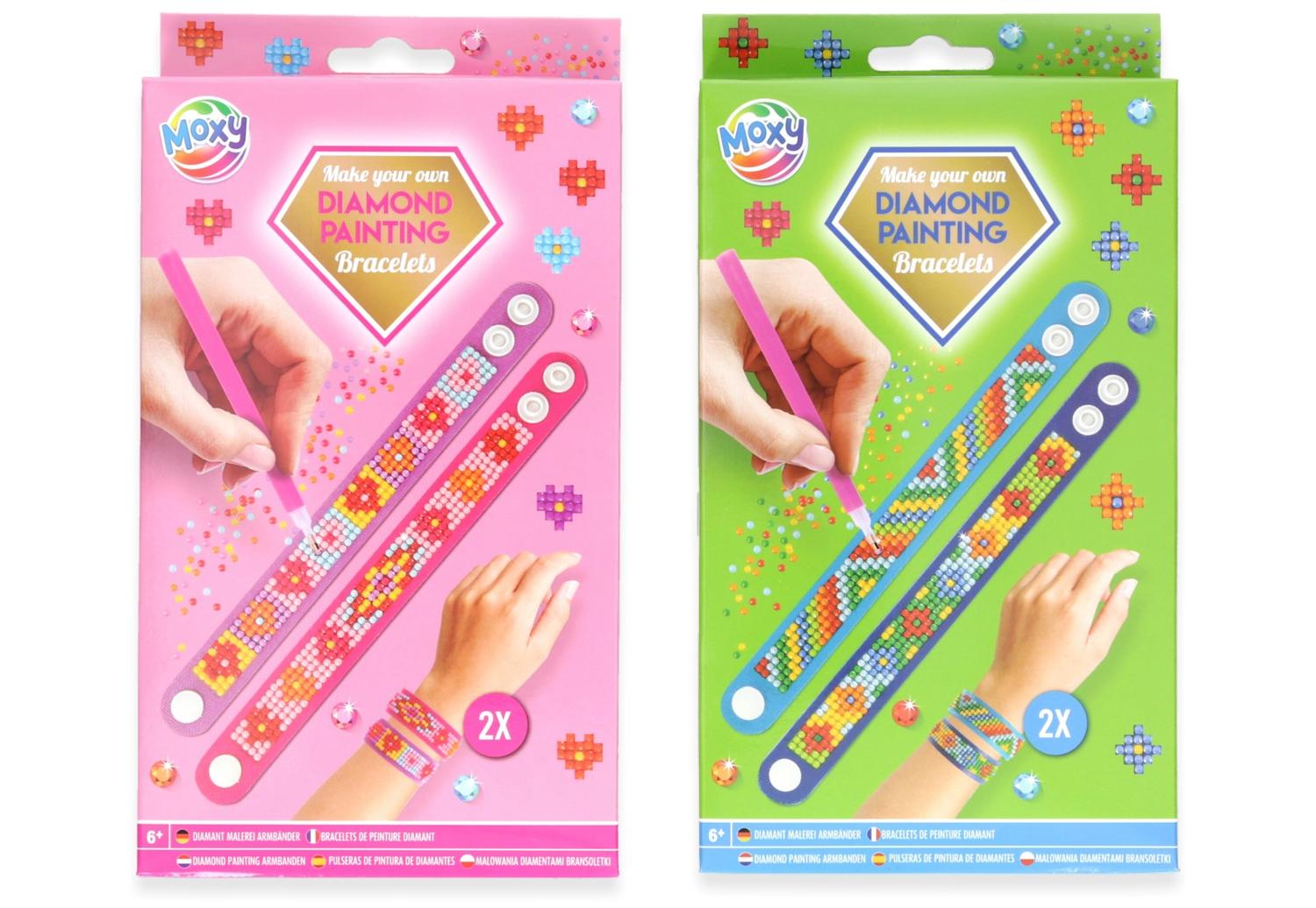 Maak je eigen diamanten armbanden. Met kleine steentjes kan je de armbanden versieren met een eigen patroon. Geschikt voor kinderen vanaf 6 jaar.