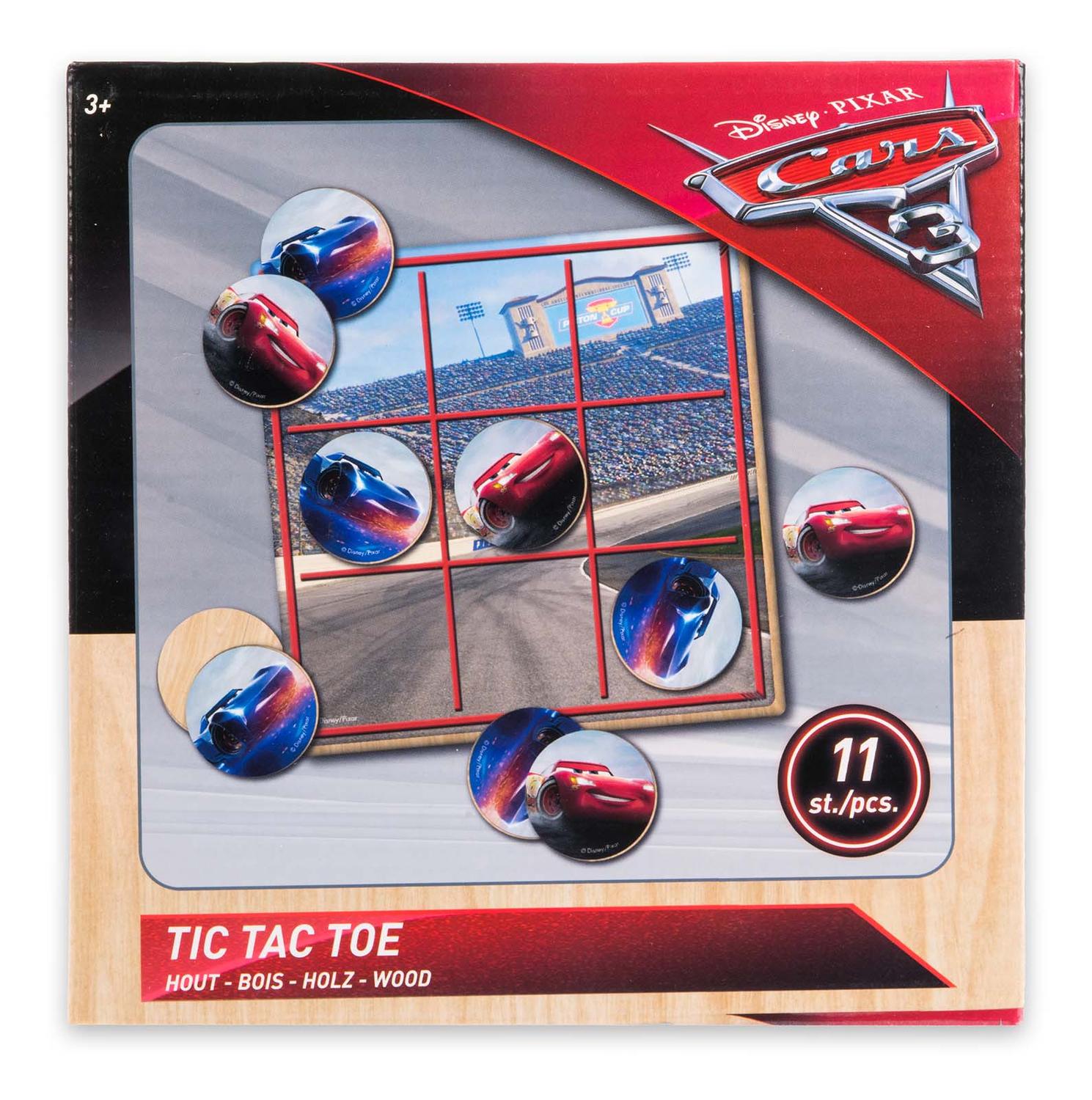 Disney Cars 3 boter kaas en eieren, hout. Speel het bekende boter, kaas en eieren spel met Cars 3 plaatjes. De set bestaat uit 11 delen, waaronder het plankje om de muntjes op te leggen. Gemaakt van FSC hout.