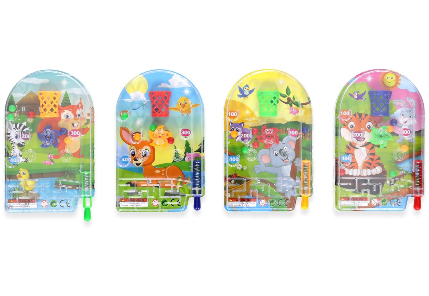 Flipperspel vrolijke dieren met doolhof. Weet jij de ballen in de meeste punten te schieten? Bevat tevens een doolhof spel aan de onderkant. Leuk voor in de grabbelton.