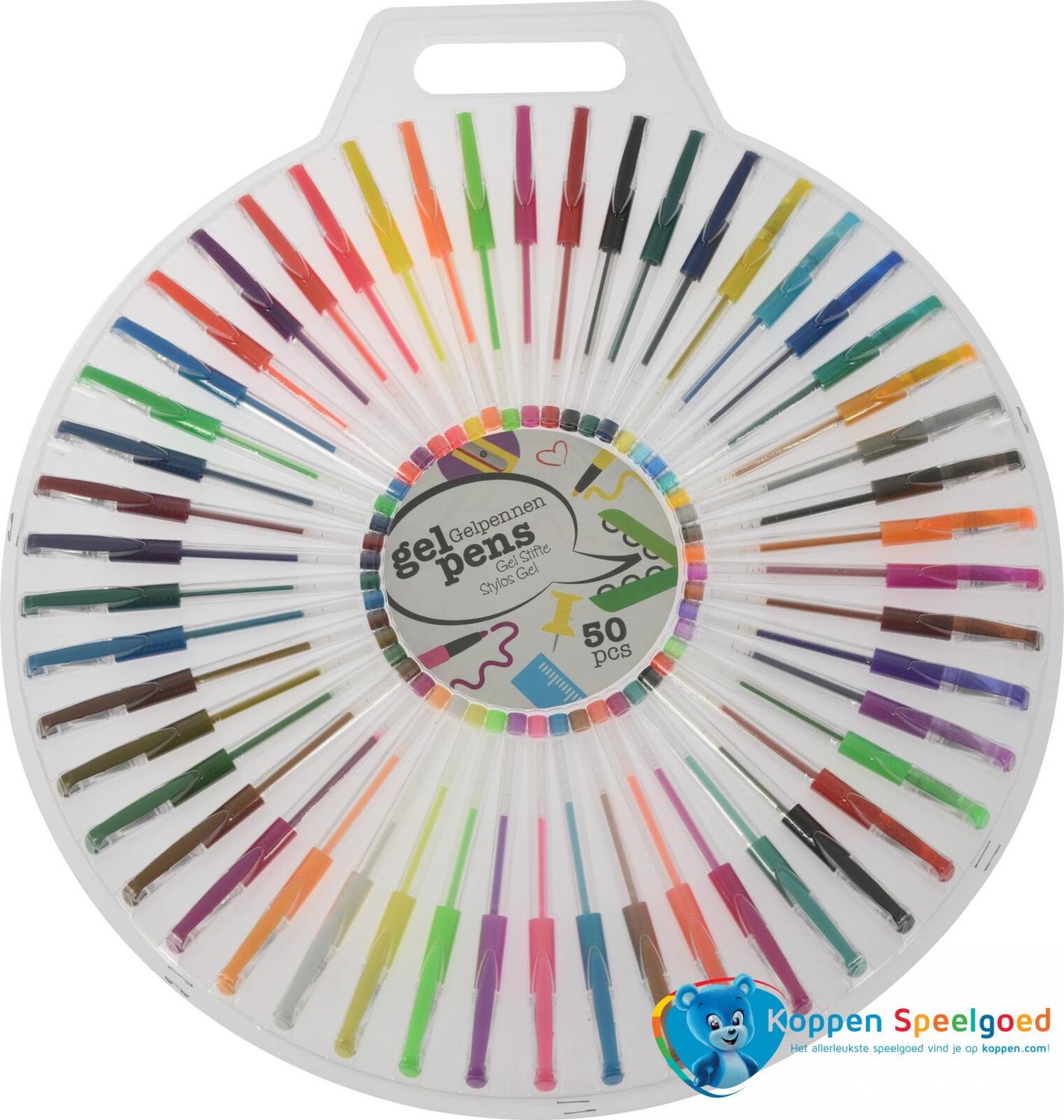 50 gelpennnen in diverse kleuren. Genoeg kleurplezier!