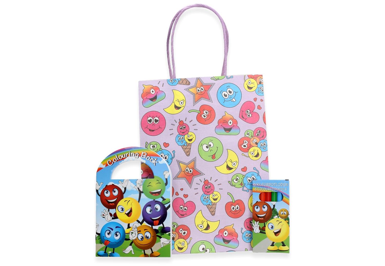 Een smile geschenktas met een smile kleurpotloden en een smile kleurboekje.