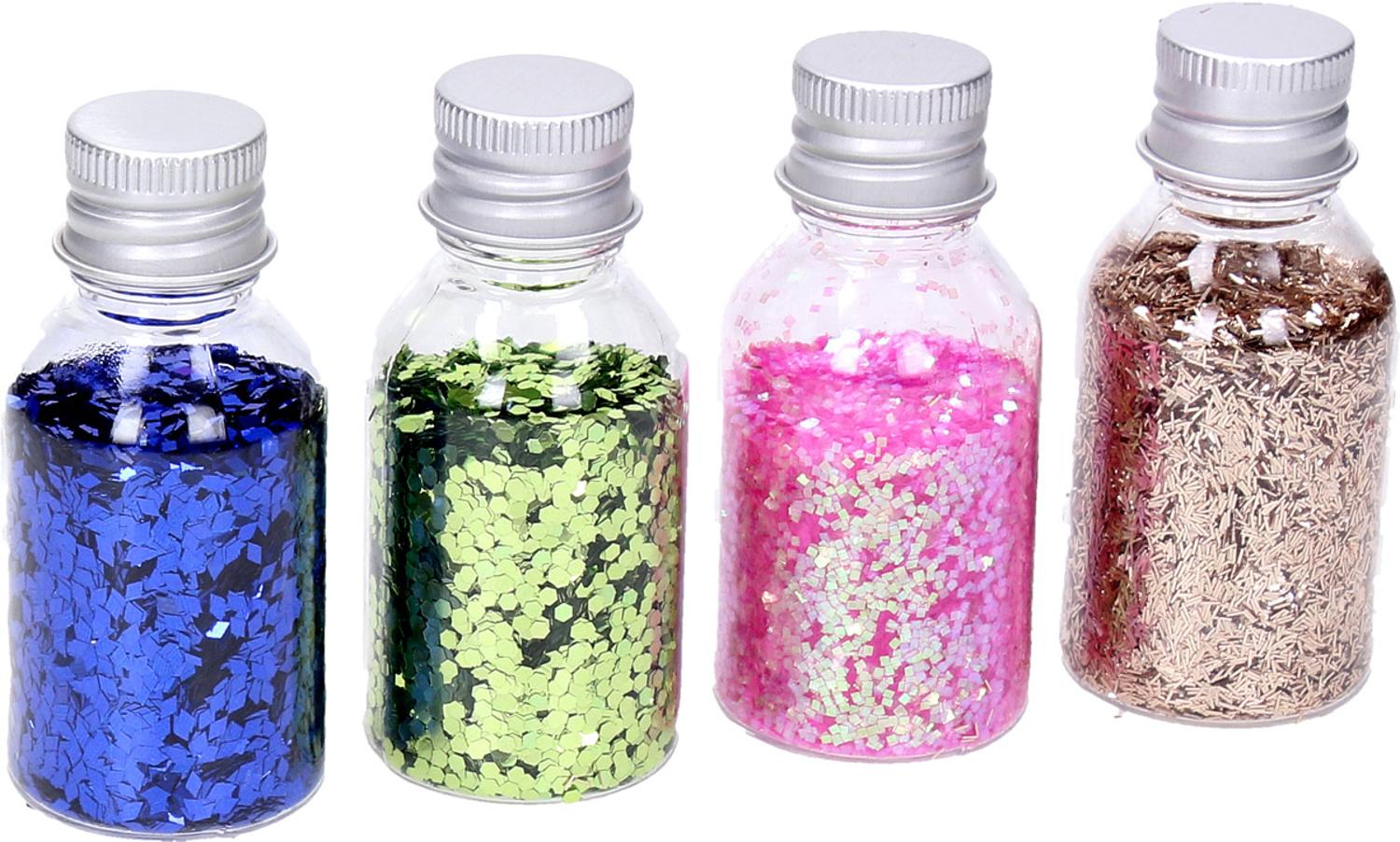 - Glitter in fles, 4 kleuren