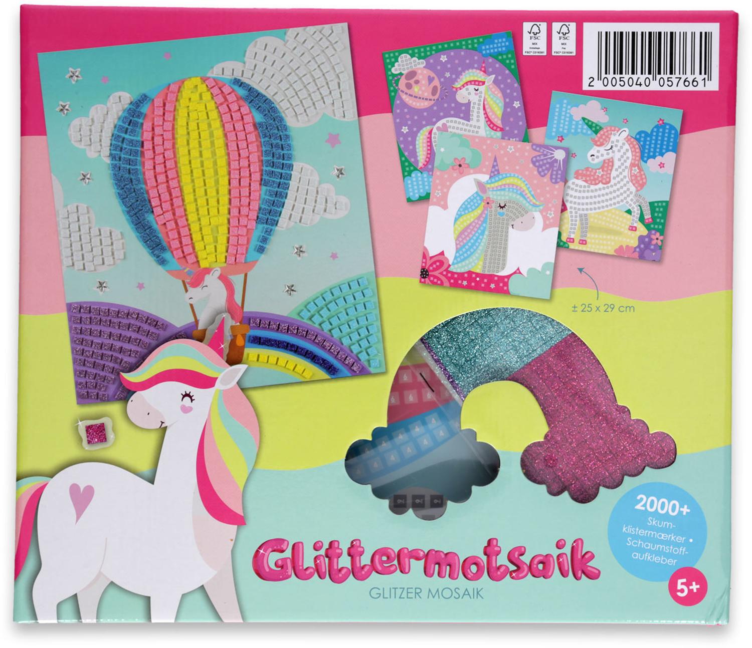 Onze glitter mozaïeksets bevatten alles wat je nodig hebt om prachtige kunstwerken te creëren. Met de kleurrijke mozaïeksteentjes en sprankelende glitterdetails kunnen kinderen hun fantasie de vrije loop laten. Het zelfklevende mozaïek maakt het eenvoudig en schoon om te gebruiken, zonder lijm of knoeien.Er zijn verschillende varianten, deze worden willekeurig door elkaar geleverd. De prijs is per stuk.