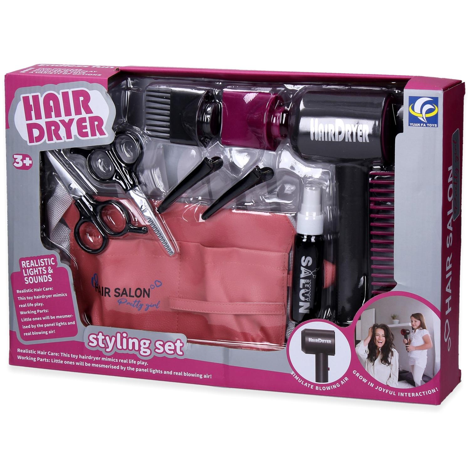 In deze set zit alles om kappertje te spelen. Waan je een echte haarstylist met al deze spulletjes. Experimenteer op je poppen, op je vriendjes en vriendinnetjes en wellicht willen je ouders ook model zitten.