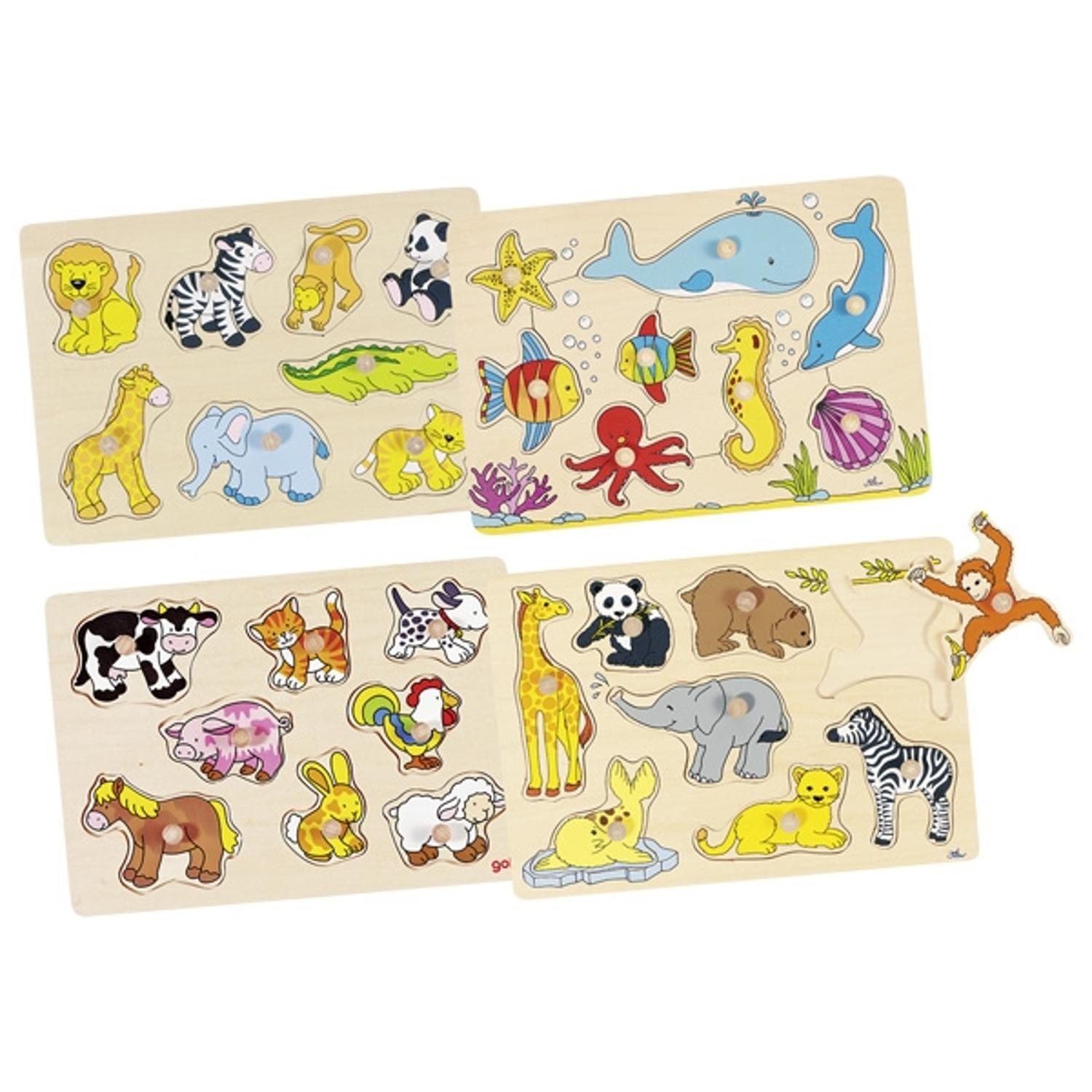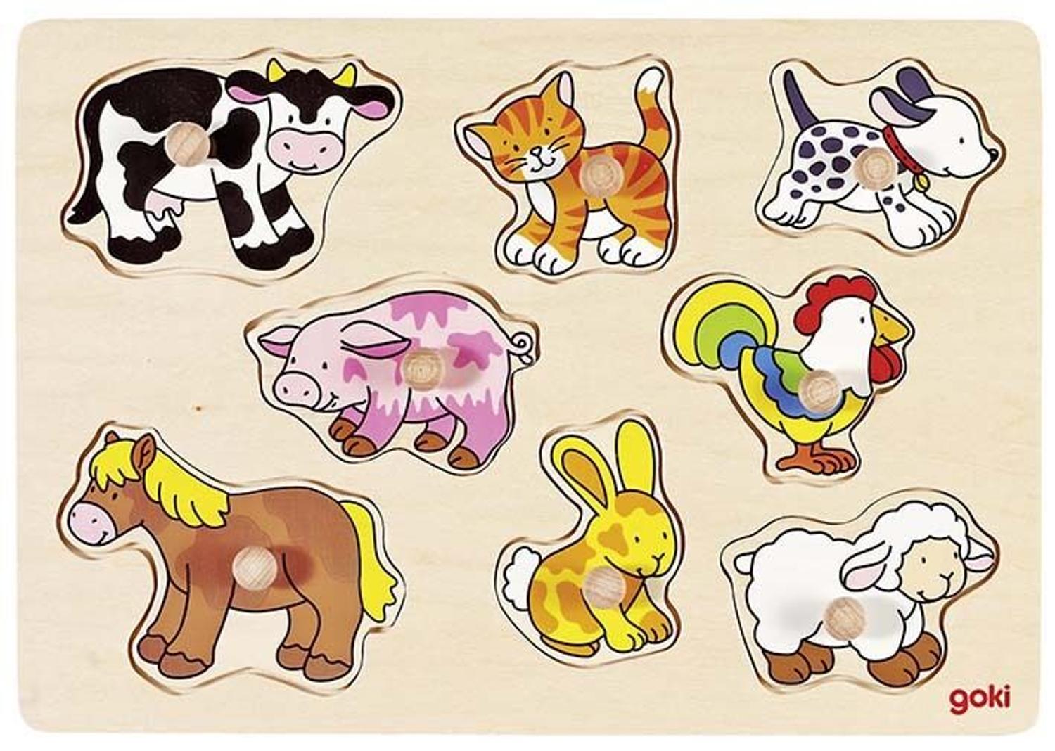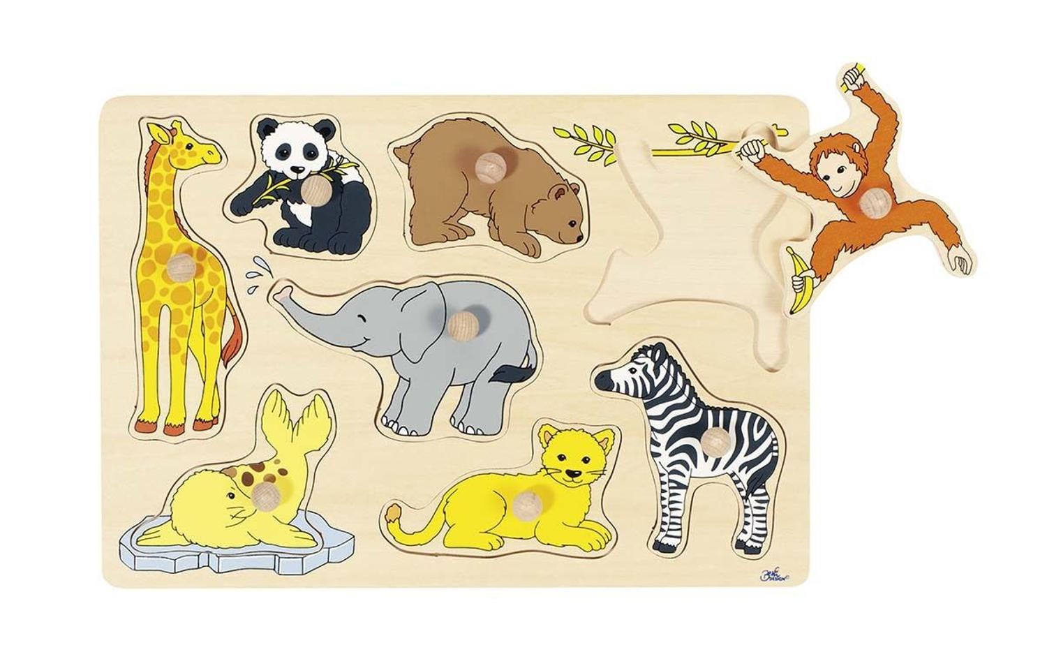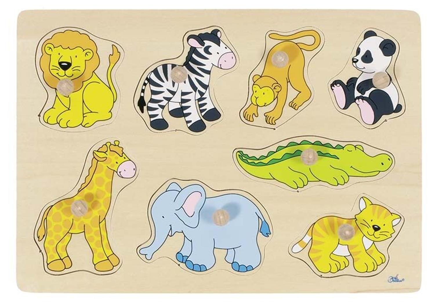Leuke houten legpuzzel dieren, bestaande uit 8 stukjes.