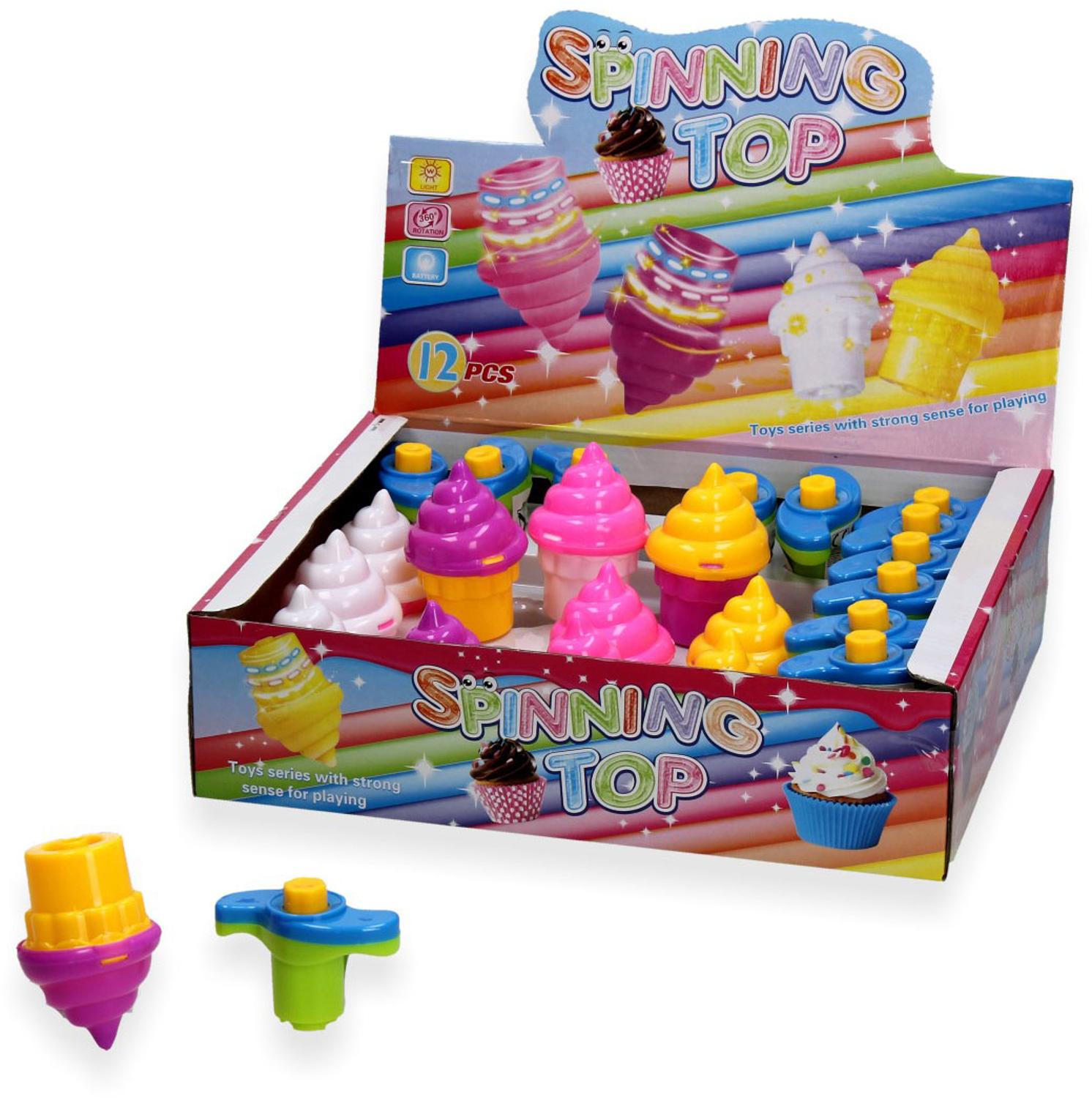 IJsco tol met licht. Draai de ijsco op de houder en schiet hem op de grond. Zodra de ijsco tolt, geeft hij licht. Als hij niet meer tolt, geeft de ijsco ook geen licht meer. Onder de categorie speelgoed met licht en / of geluid staan meer vergelijkbare artikelen.