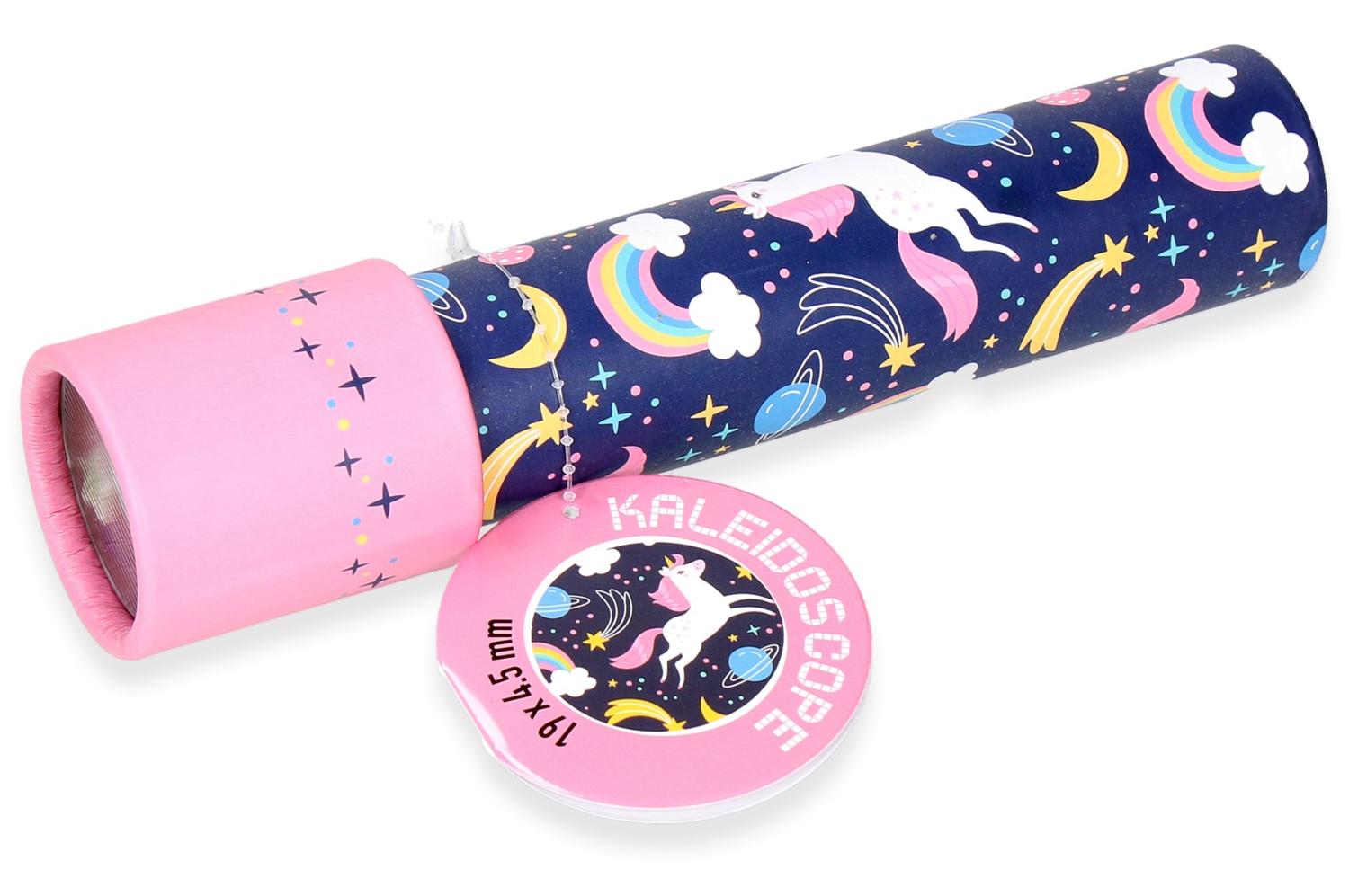 Kaleidoscoop in eenhoorn-thema. Kijk door de buis en draai wat aan de dop. Er ontstaan prachtige patronen!