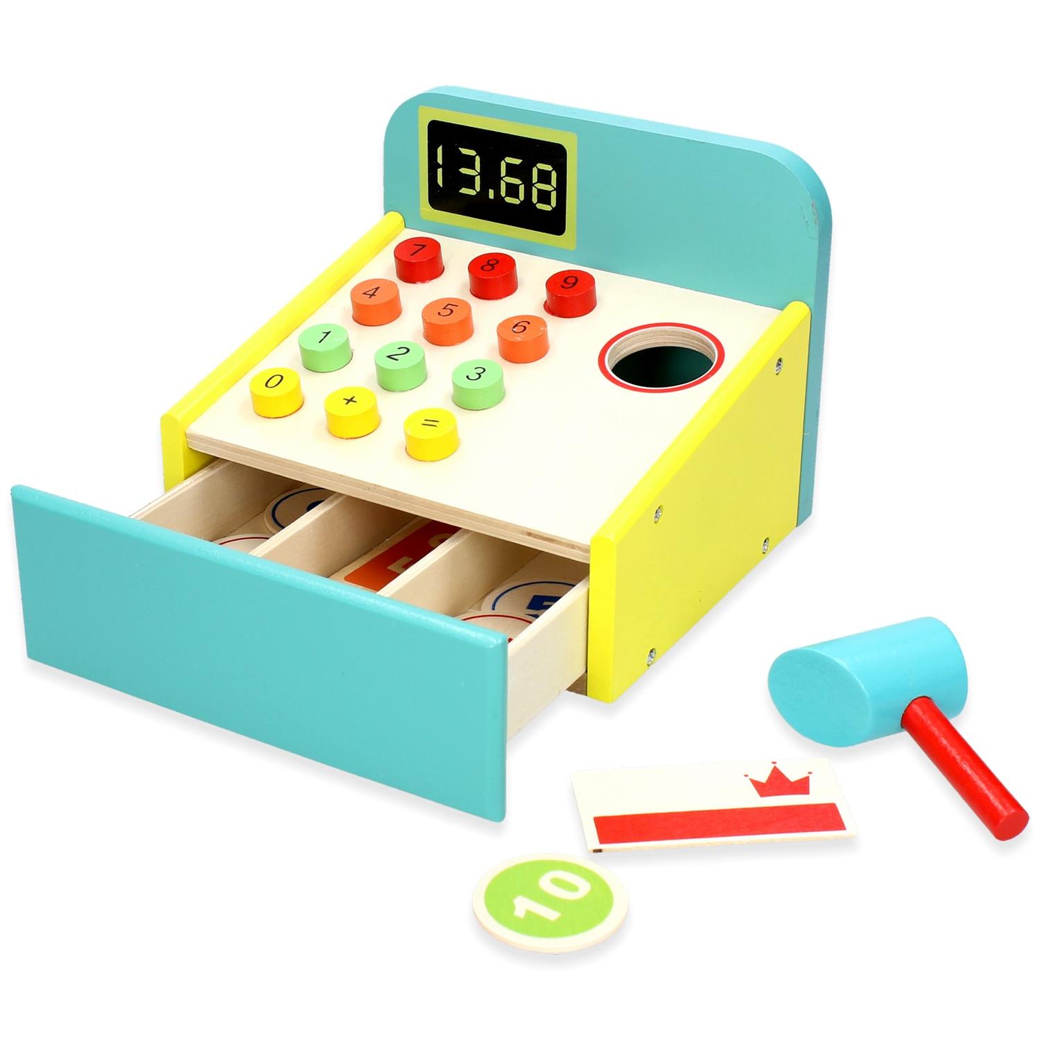 Rekenen, scannen, afrekenen! Met deze leuke houten kassa beleven kinderen uren speelplezier. Perfect voor rollenspellen en kleine winkeltjes thuis. Klaar voor elke kleine ondernemer!