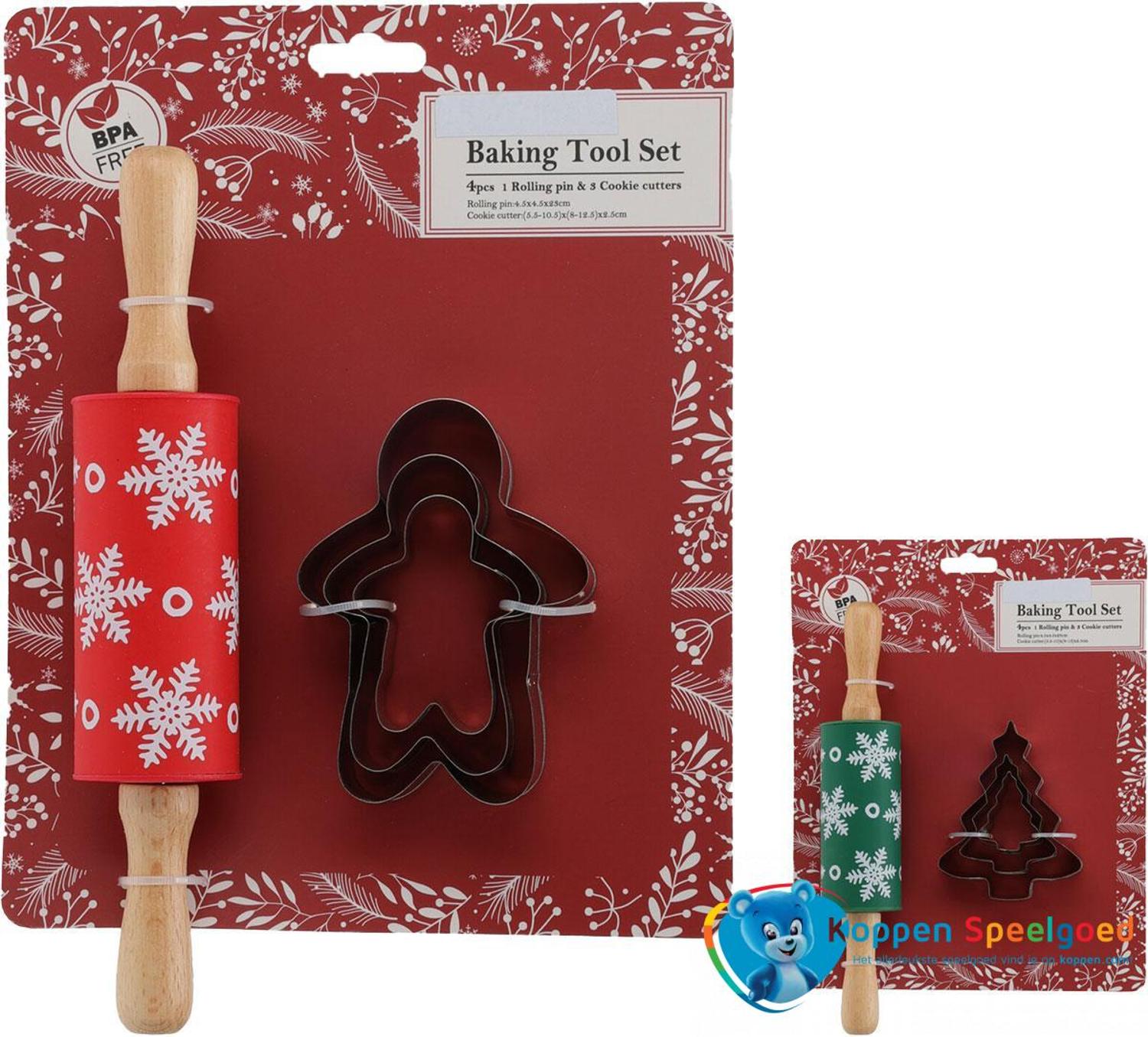 Maak heerlijke kerstkoekjes met deze 4 delige bakset. Er zit een deegroller bij en diverse vormpjes. Er zijn 2 varianten. Deze worden door elkaar geleverd. De prijs is per stuk.