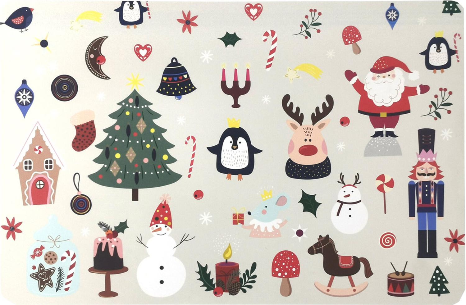 Heerlijk dineren tijdens te kerstdagen met deze schattige kerstplacemats! Op de kerstplacemat staan leuke kerstfiguurtjes zoals een sneeuwpop, kerstman en rendier.