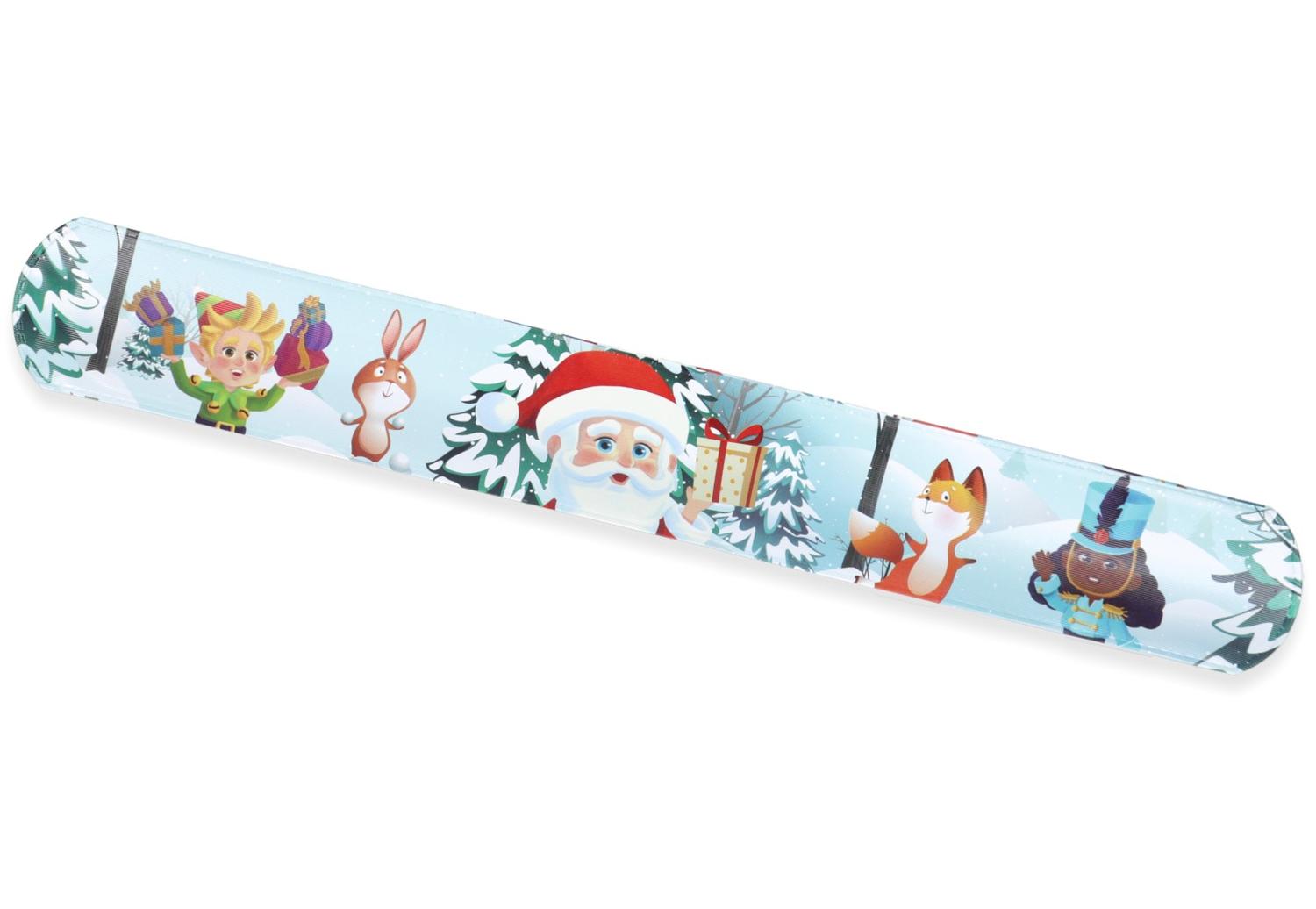 Klaparmband kerst. Een klaparmband met een kerst print. Sla de rechte armband tegen je pols en hij klapt om je arm. Geschikt voor kinderen vanaf drie jaar.