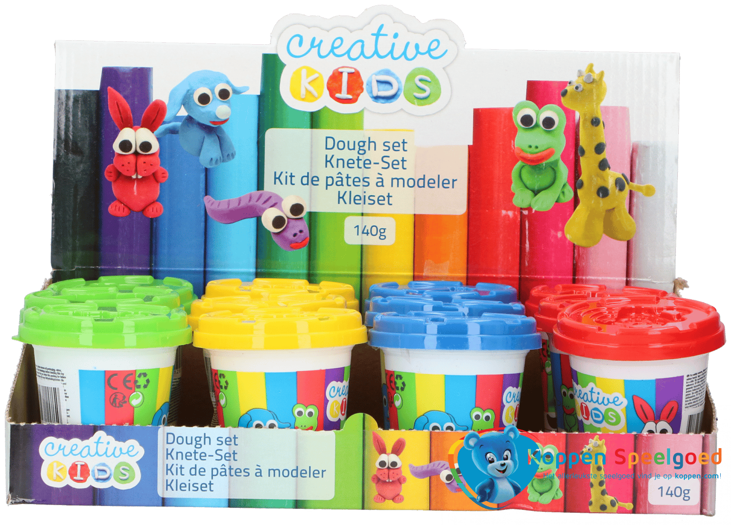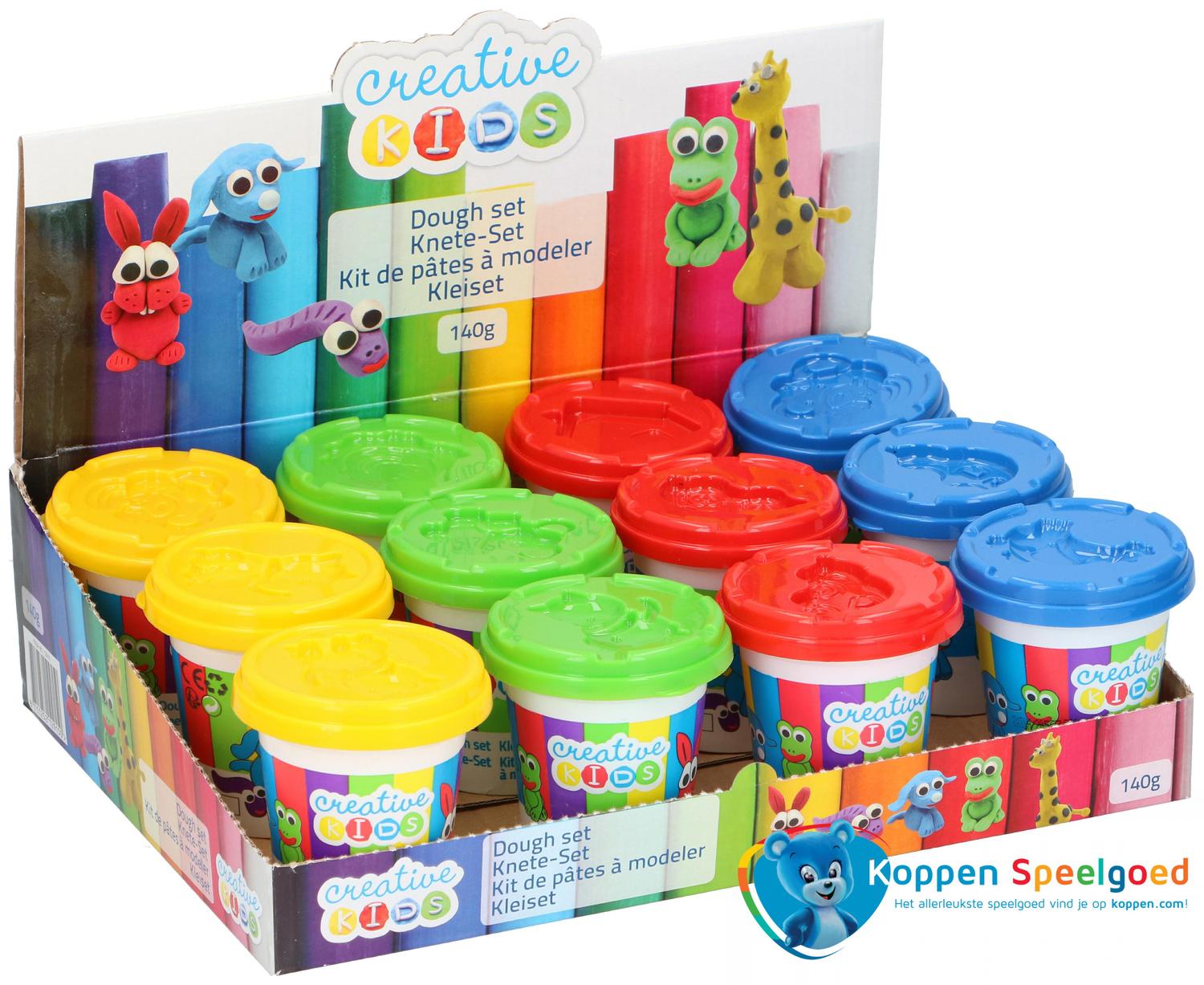 Potje met gekleurde klei, 140 gram. De klei is super zacht en droogt niet uit als je het goed in het afgesloten potje bewaart.