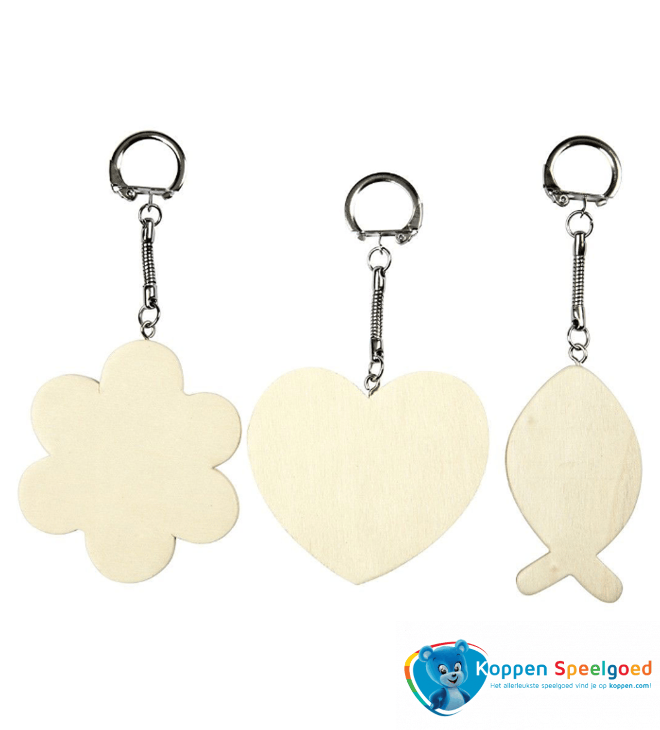 Maak je eigen toffe sleutelhanger van hout. Makkelijk te verven. Verf niet inbegrepen. Er zijn verschillende varianten. Deze worden door elkaar geleverd. De prijs is per stuk.