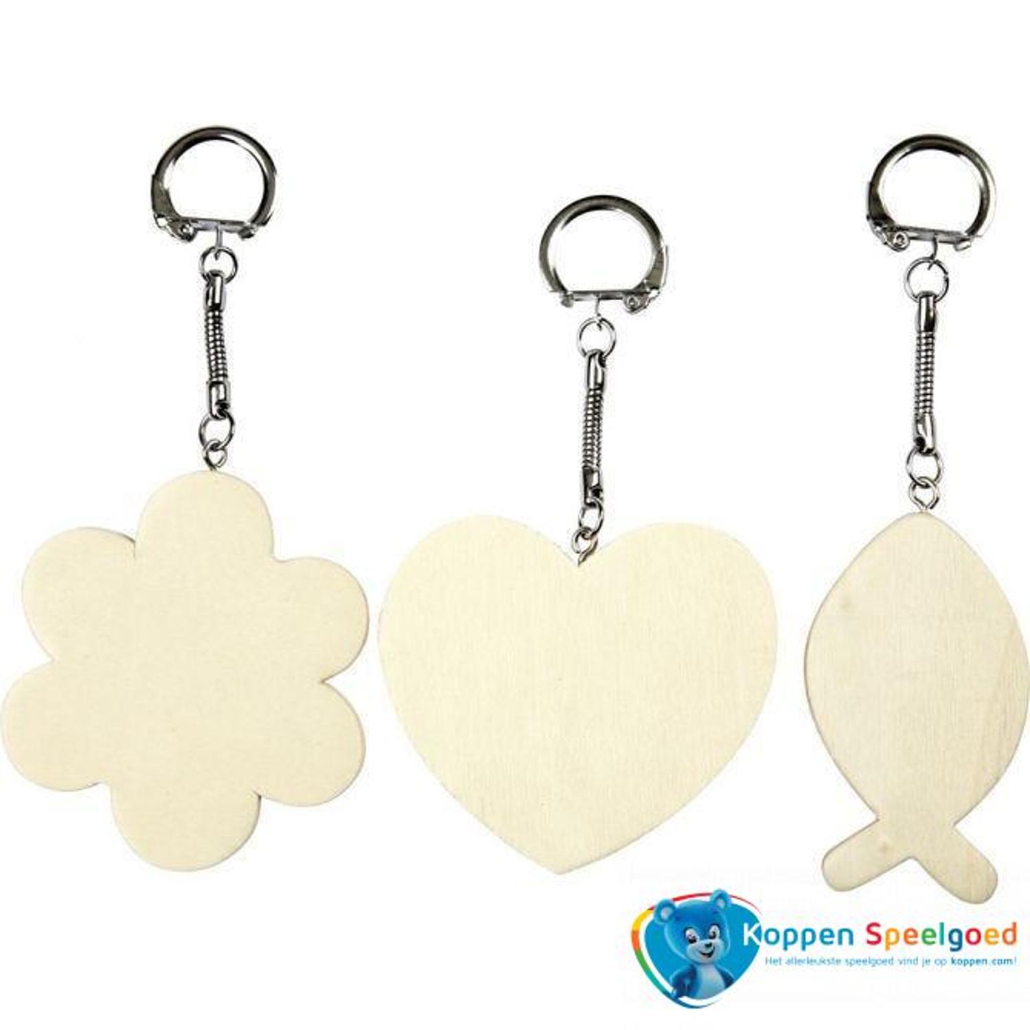- Kleur je eigen sleutelhanger hart, vis of bloem, hout