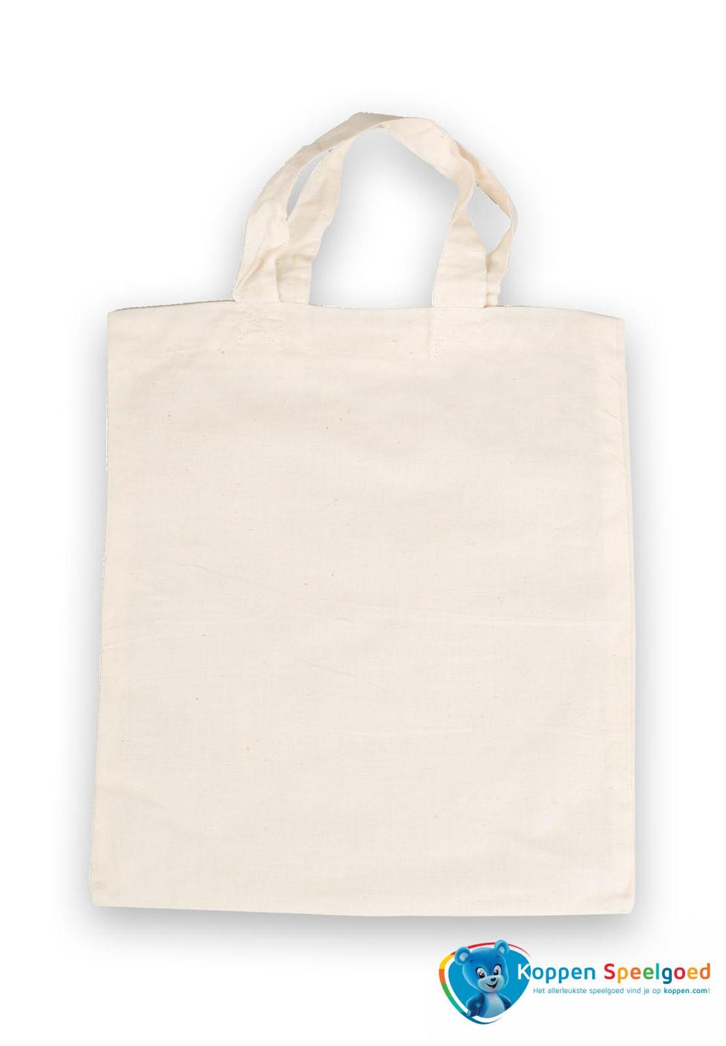 Kleur je eigen tasje klein. Een blanco tasje om zelf te versieren. Een tip om bij dit tasje te bestellen is artikel 90420, 8 vetkrijtjes. Leuk om te tekenen en schilderen.