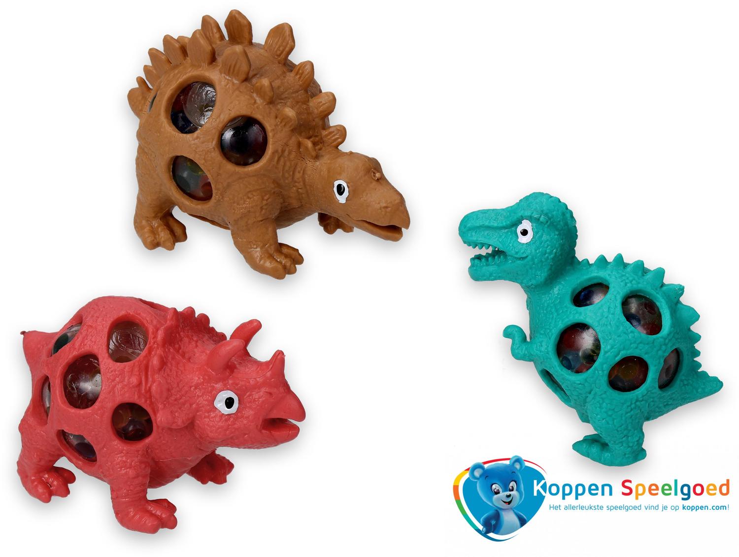 Knijpbal dinosaurus. Knijp in de dino en er komen allemaal balletjes uit. Laat je hem weer los, dan gaan de balletjes weer terug de dino in. Ook geschikt als anti-stress bal. Geschikt voor kinderen vanaf drie jaar. Leuk voor in de grabbelton. De verschillende dino's worden door elkaar geleverd.