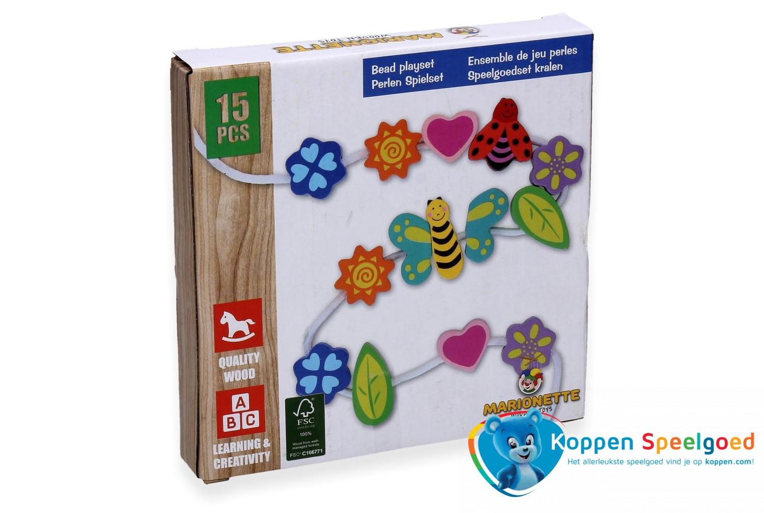- Kralenketting maken 15 stukjes, hout