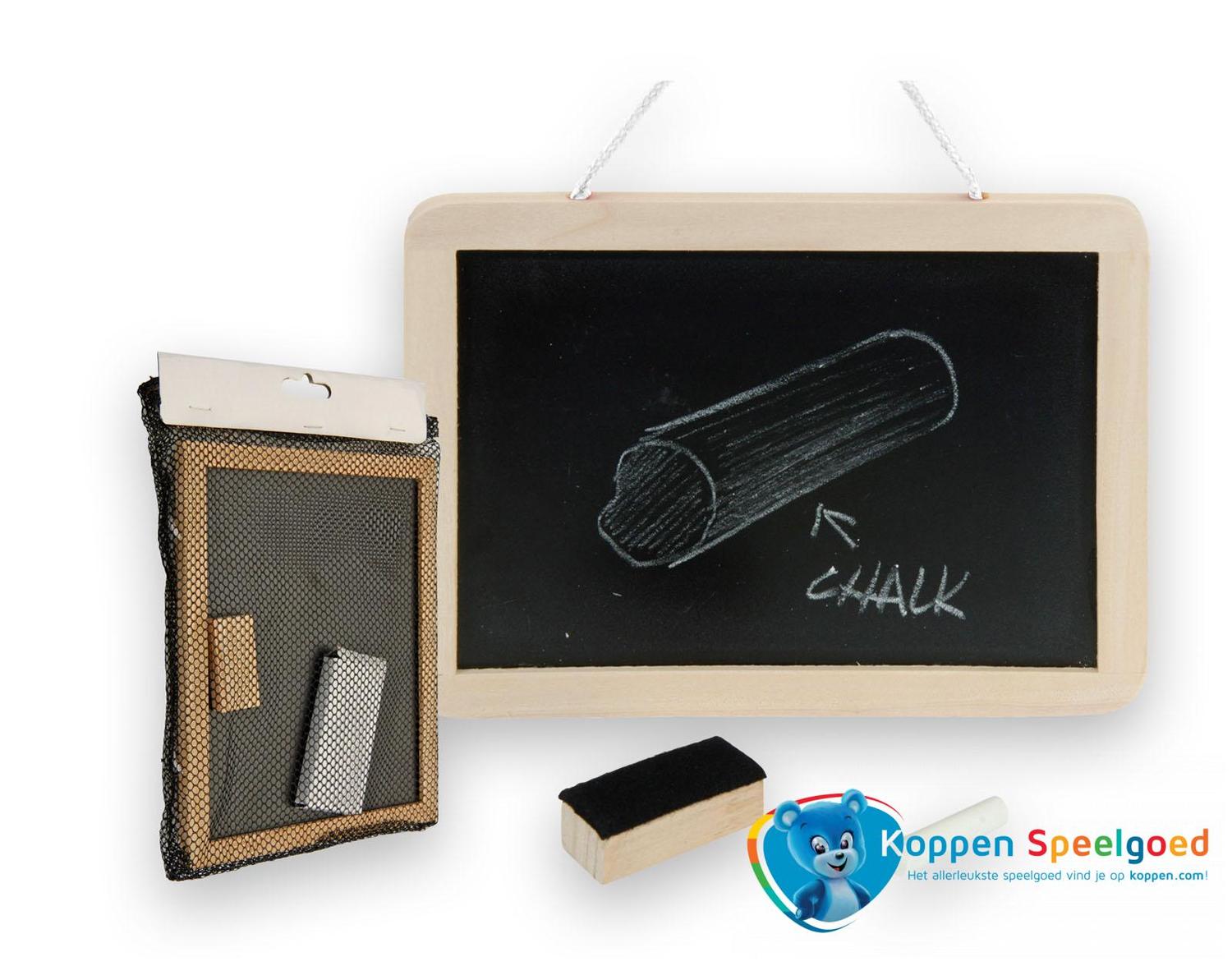 Krijtbord met krijtjes en wisser. Dit krijtbord wordt geleverd met drie krijtjes en inclusief wisser. Geschikt voor kinderen vanaf drie jaar. Onder de categorie schrijfwaren staan meer krijtbordjes.