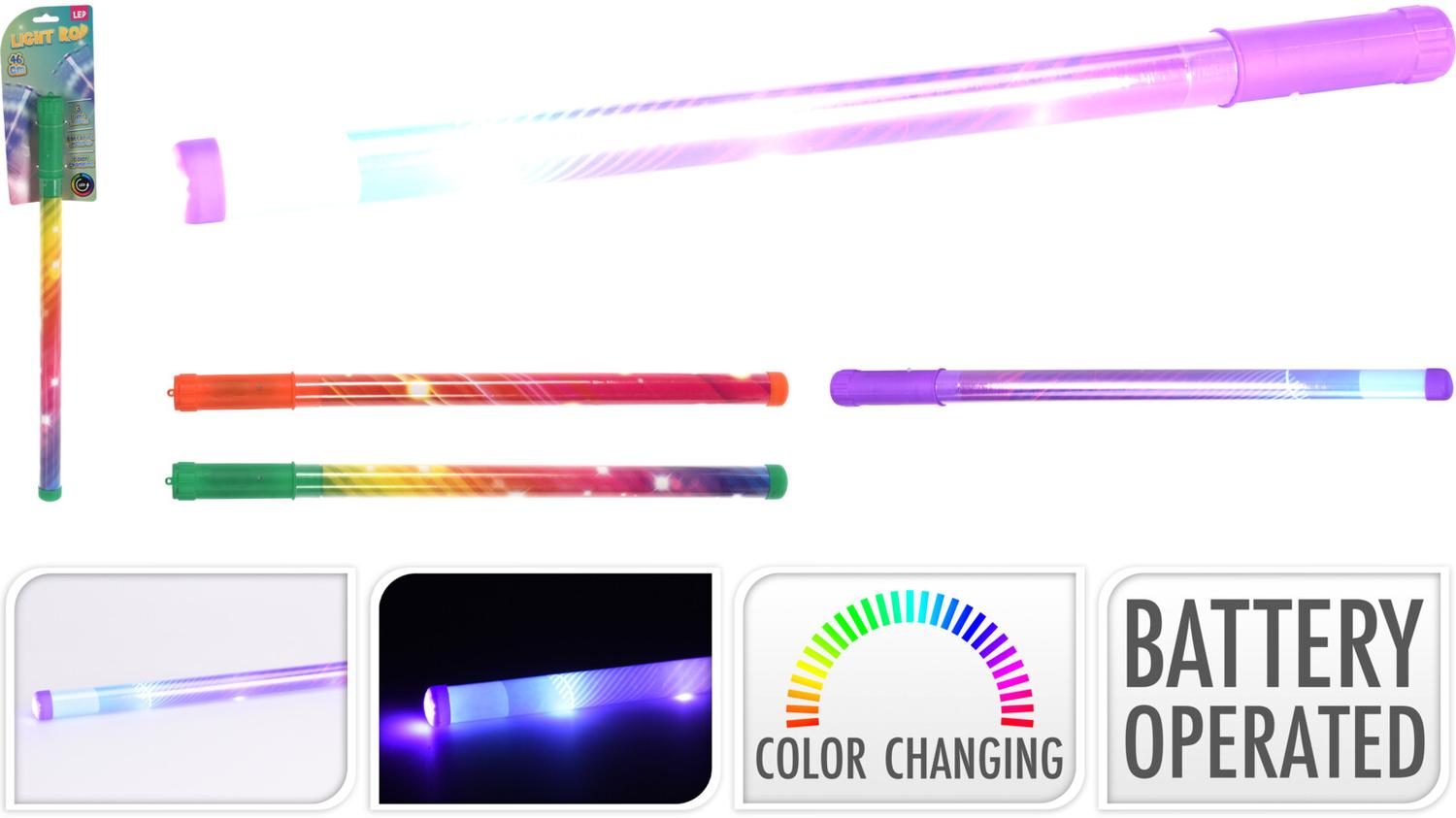 Lichtstaaf van 46 cm lang. Hij geeft licht en het licht verandert van kleur. De batterijen zitten er al in.