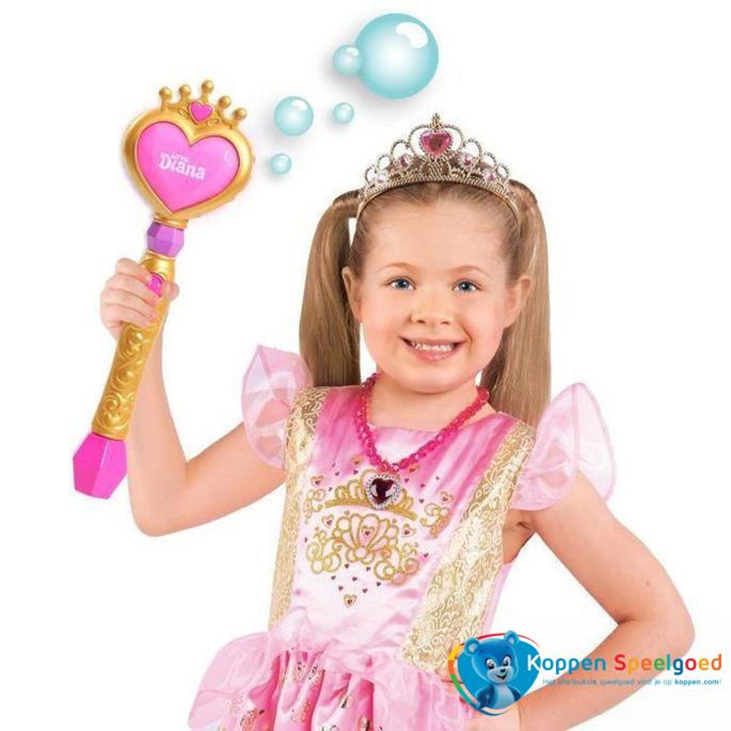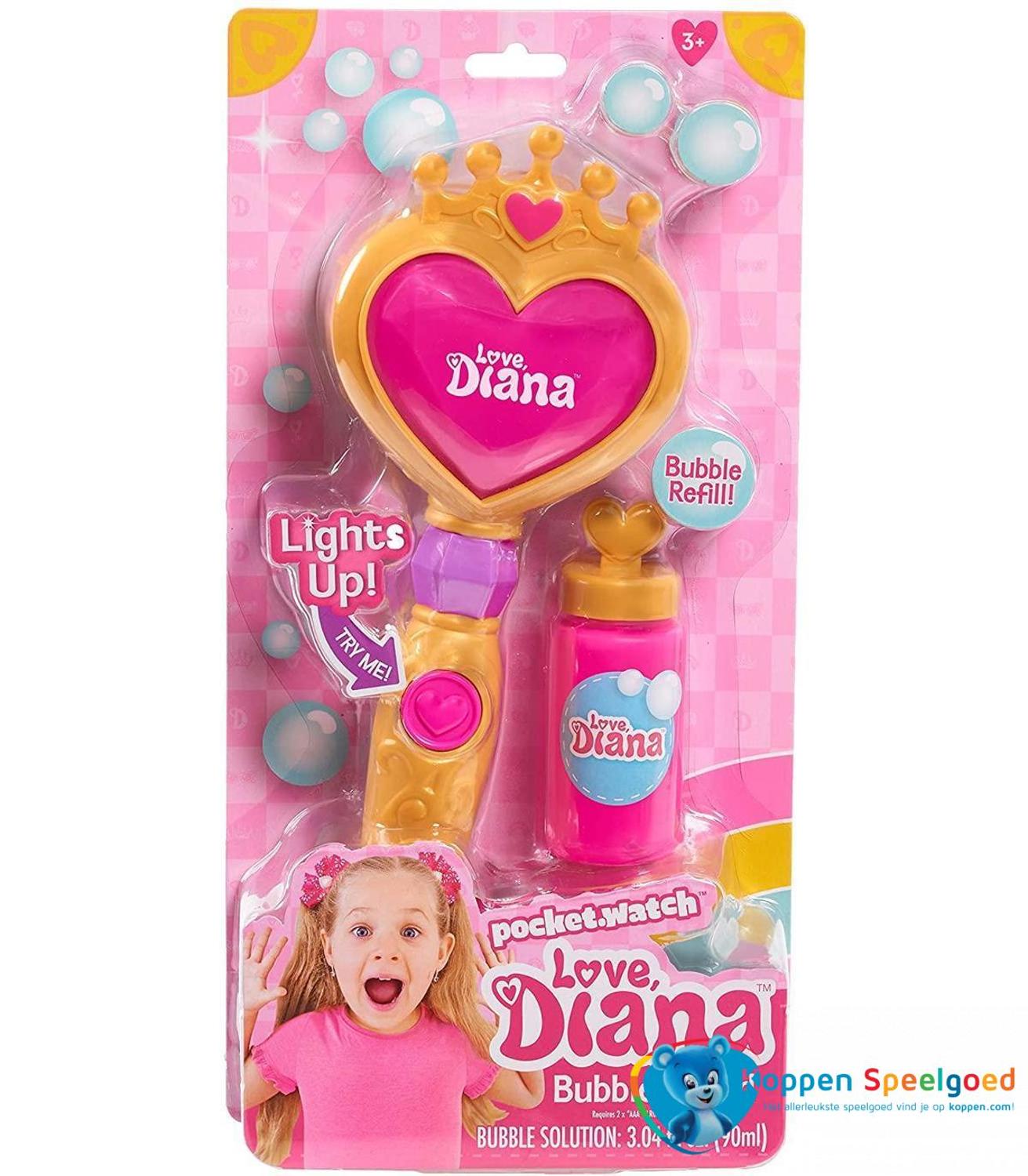 Voeg een magisch tintje toe aan je speeltijd met de Love Diana prinsessen bellenblaas! Met een simpele zwaai van de toverstaf kun je een magisch bubbelspeelland betreden! Geeft licht en komt met een navulfles.