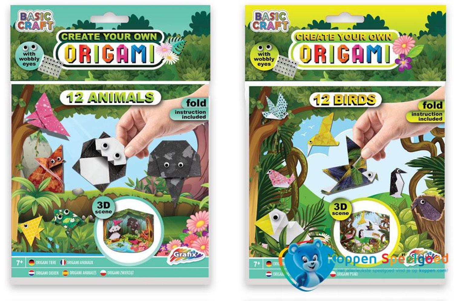 Maak je eigen origami met deze kleurrijke vouwsets! Met duidelijke instructies vouw je zelf leuke dieren of vogels. Maak ze af met grappige wiebeloogjes. Er zit een 3d-achtergrond bij. Per set maak je ongeveer 12 dierfiguren.