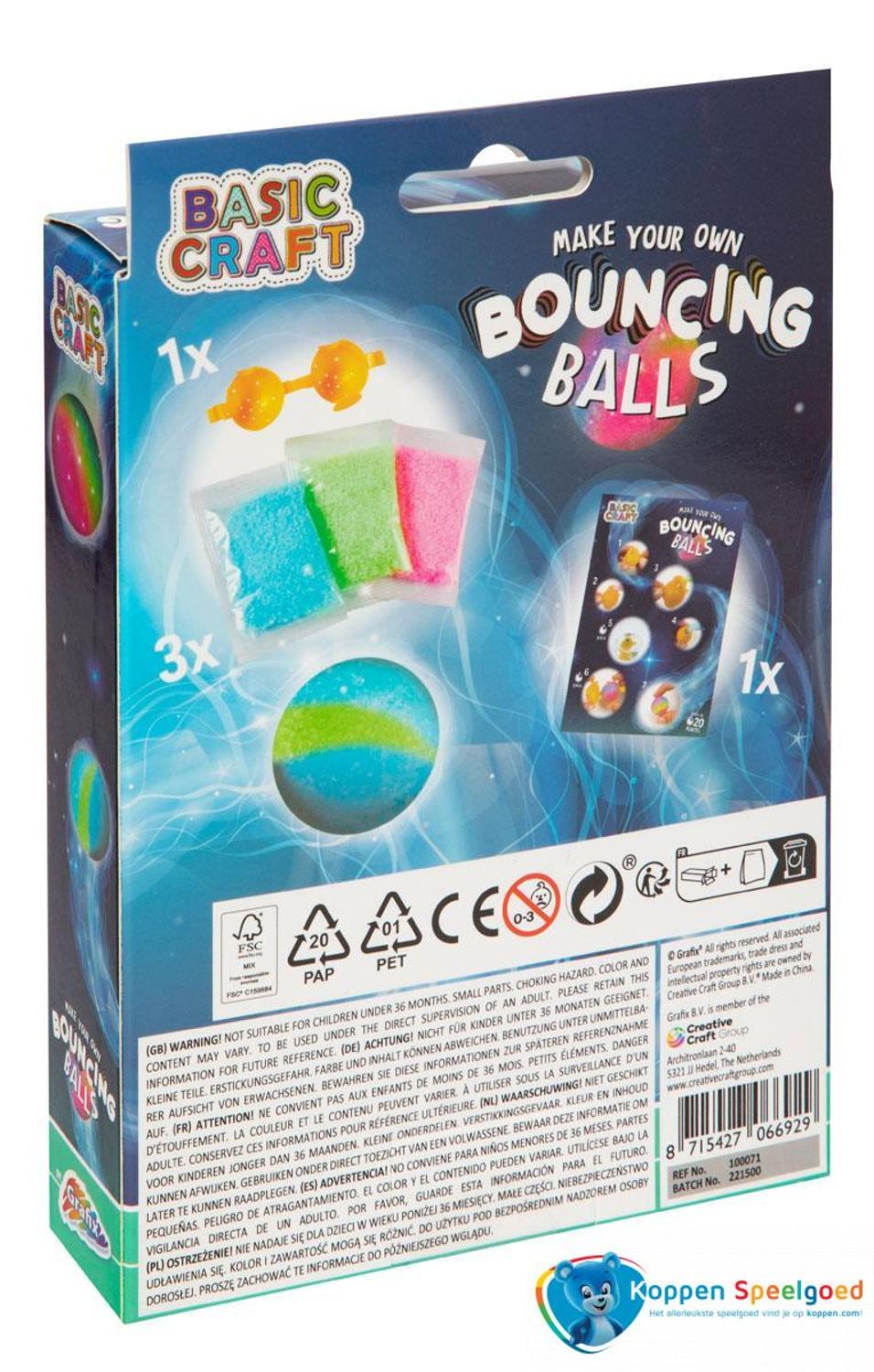 Maak je eigen stuiterbal in doosje. In mooie kleuren! Klaar in 20 minuten. Zet de mal in elkaar. Voeg de kleuren toe. Leg de mal 5 - 10 minuten in water. Laat de stuiterbal 10 minuten drogen en haal hem dan uit de mal.