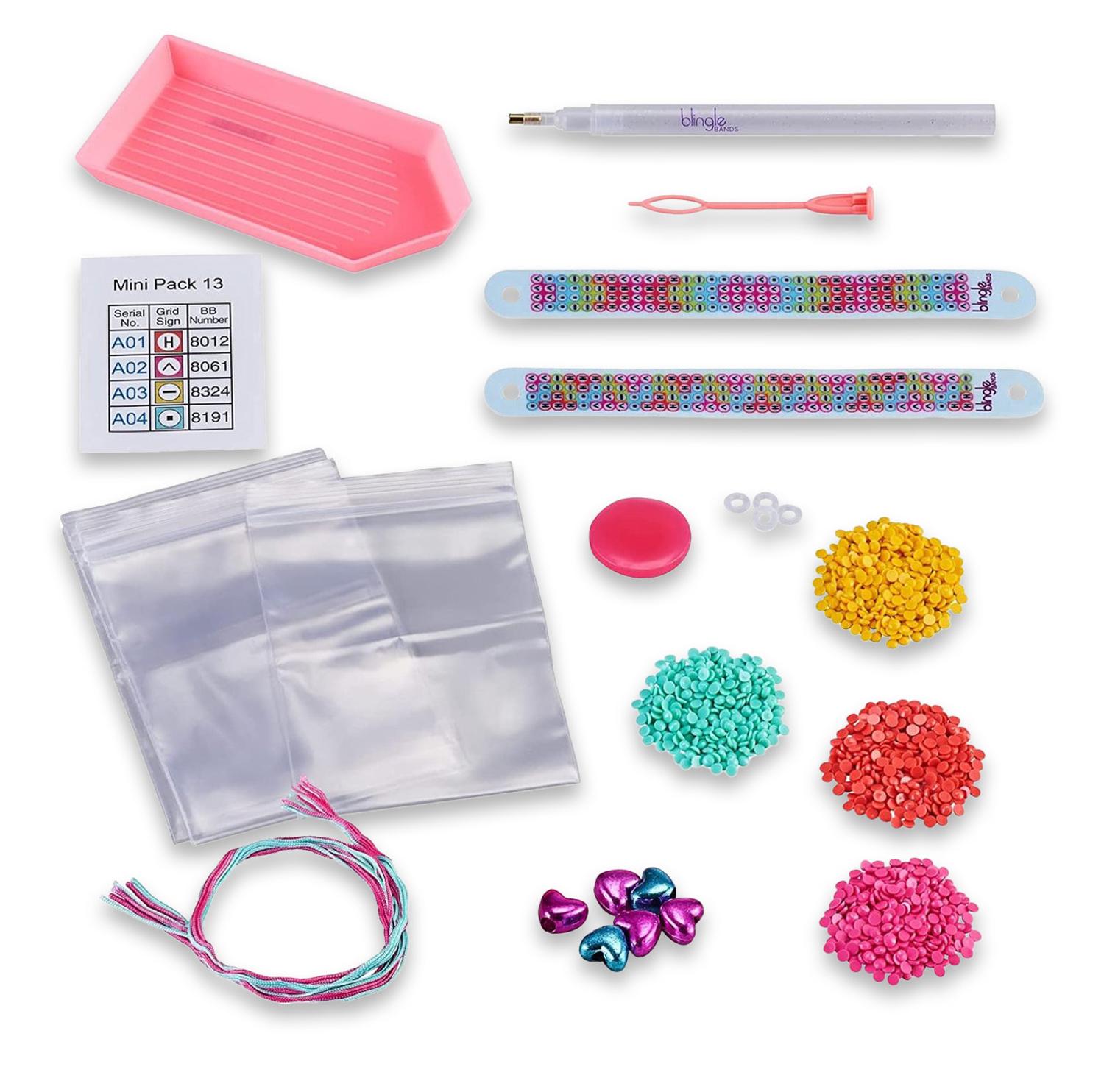 Blingle Bands 25202 Bestie Pack met 2 vriendschapsarmbanden om zelf vorm te geven, complete set met verschillende designs, diamond painting en kralenknutselen voor kinderen vanaf 7 jaar