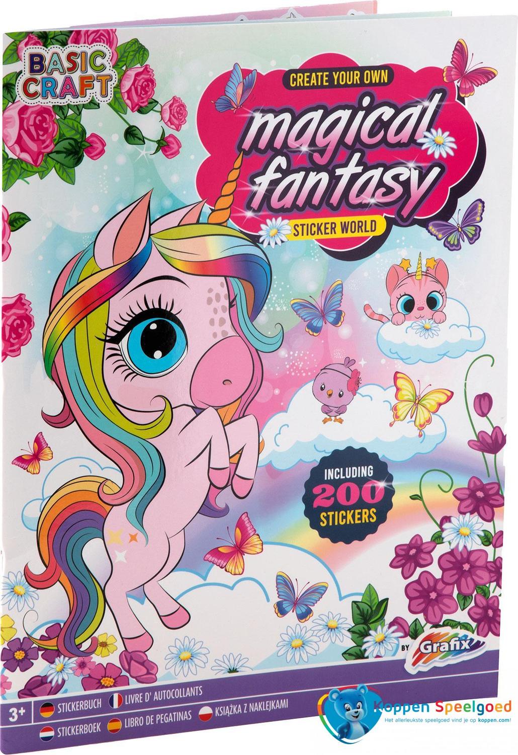 Magische fantasiewereld stickerboek. Een leuk boek boordevol met kleurplaten en stickers.