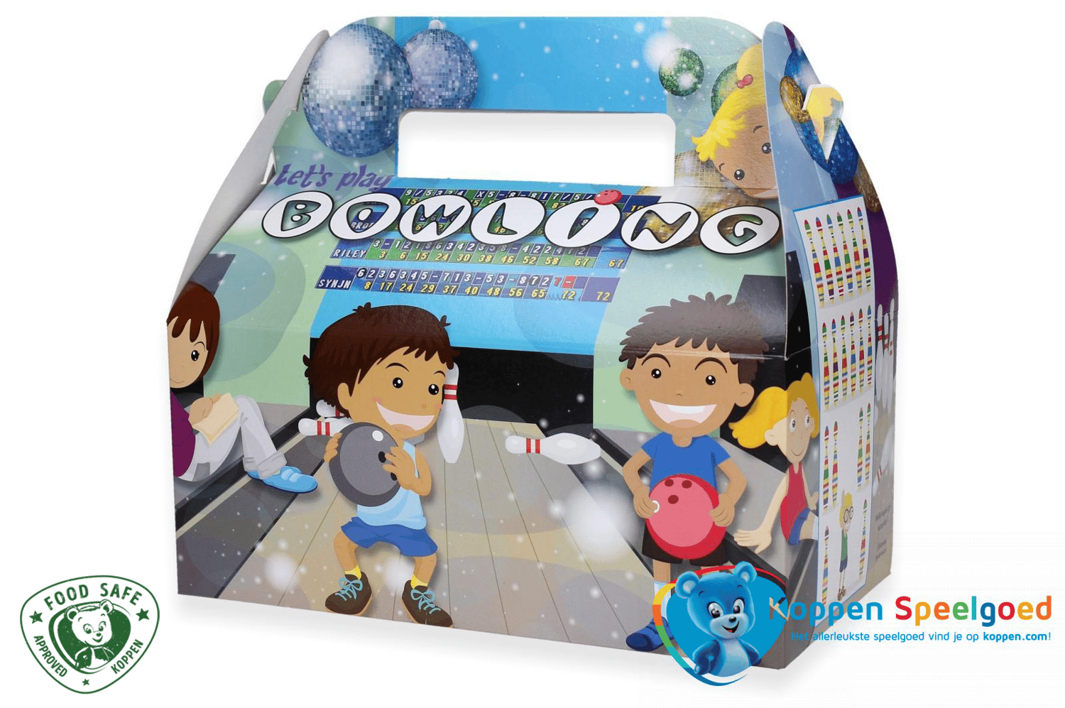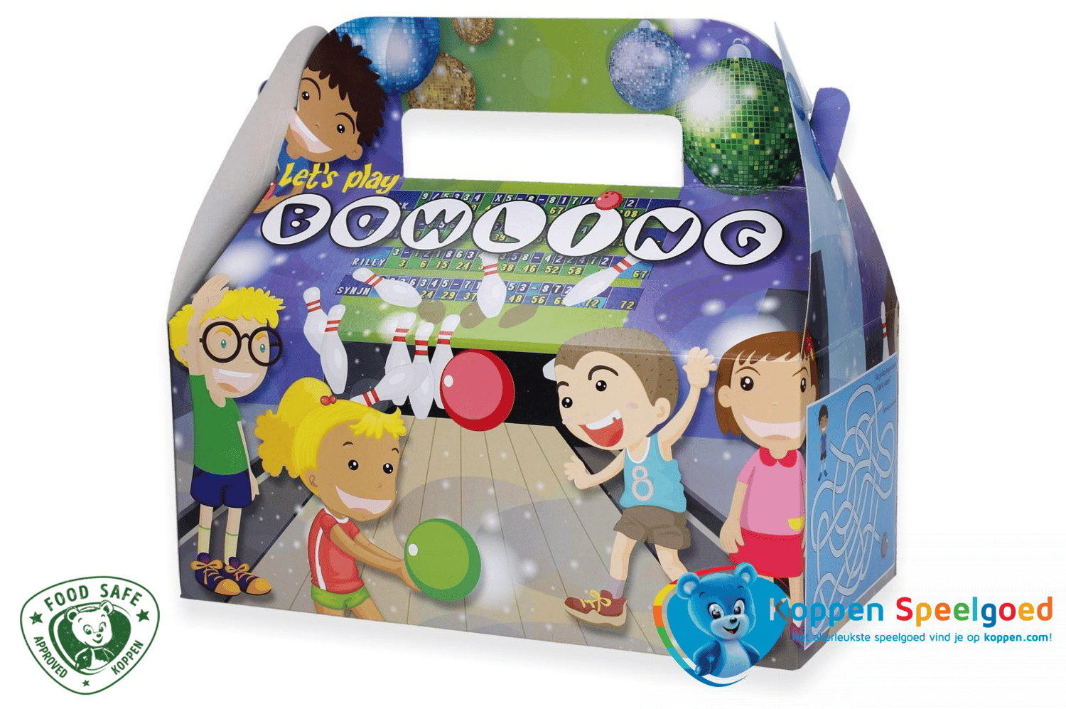 Naast het speelse design met bowlende kinderen, heeft de menubox ook een spelletje op de zijkant. Dit zorgt voor extra speelplezier en maakt de maaltijd nóg leuker voor kinderen.