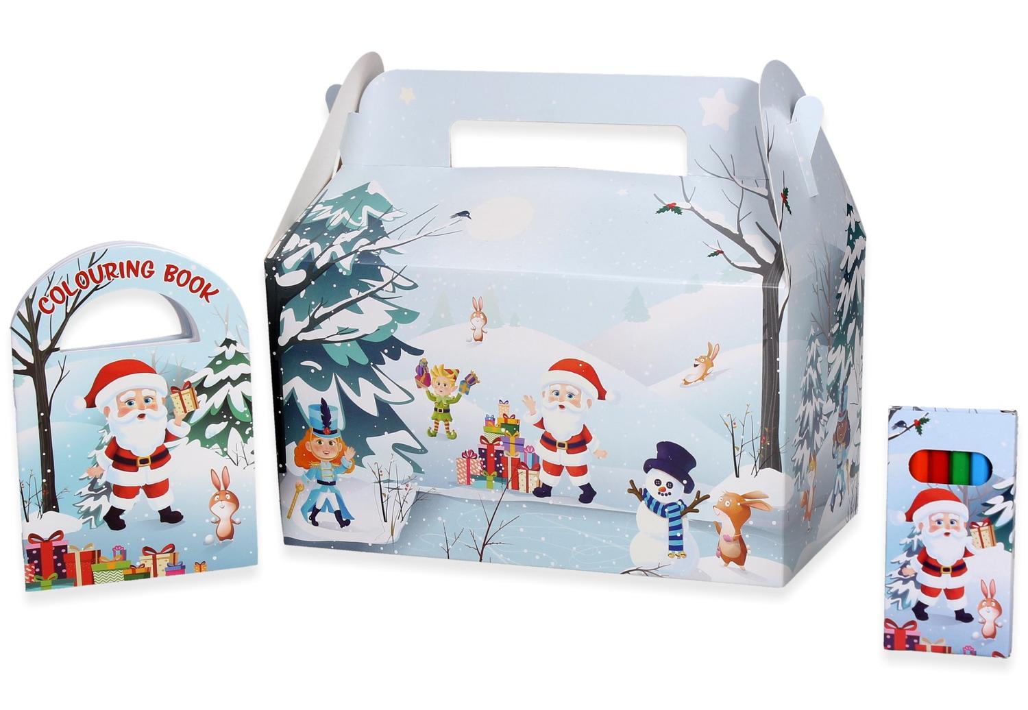 De set bestaat uit één menubox, Kleurpotloodjes en één kleur- en stickerboekje. Helemaal in het thema van Kerst.
