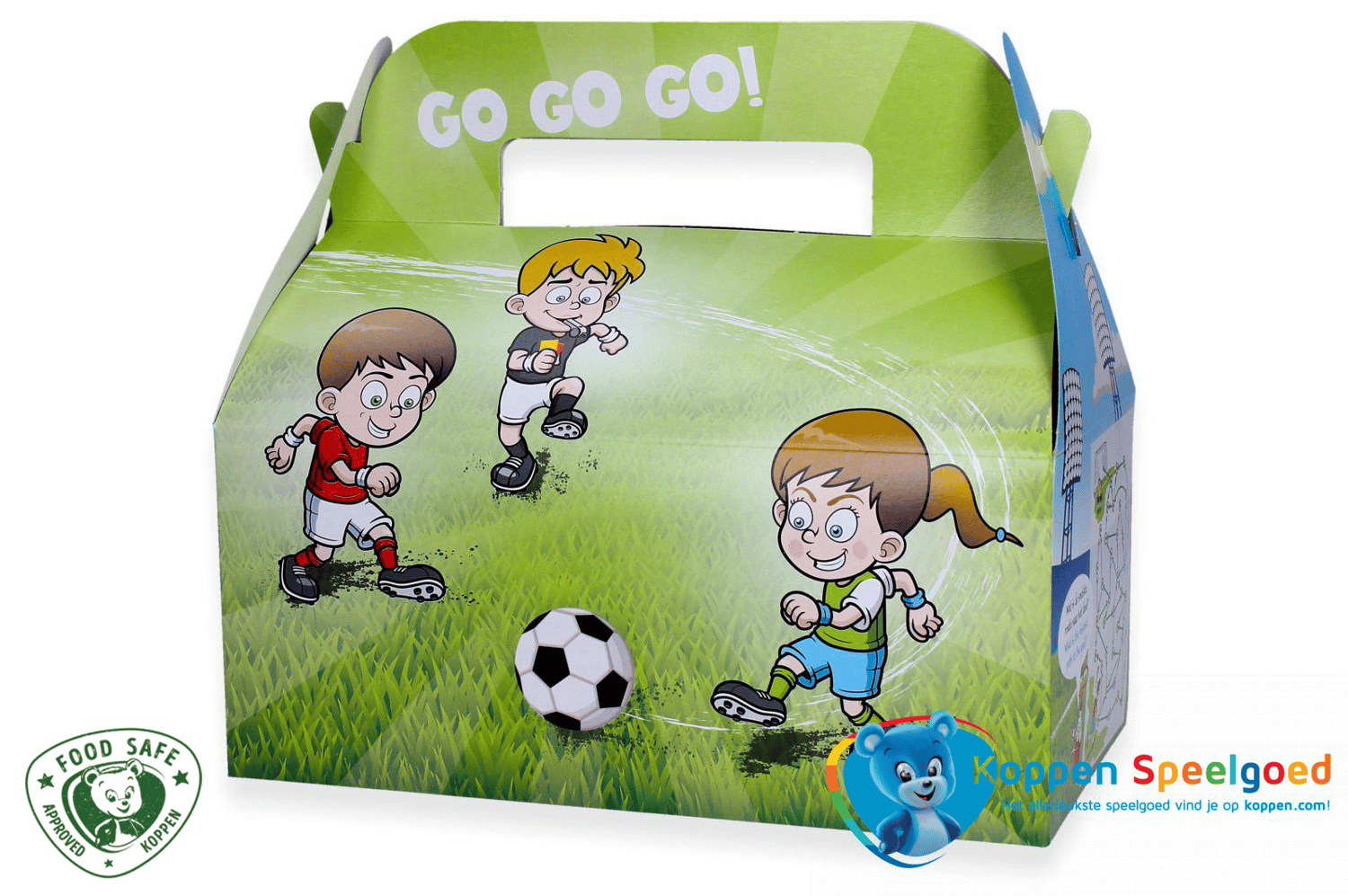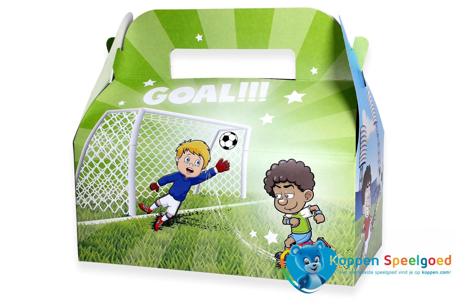 Naast het vrolijke design met een voetballer en keeper, heeft de menubox ook een spelletje op de zijkant. Dit zorgt voor extra speelplezier en maakt de maaltijd nóg leuker voor kinderen.