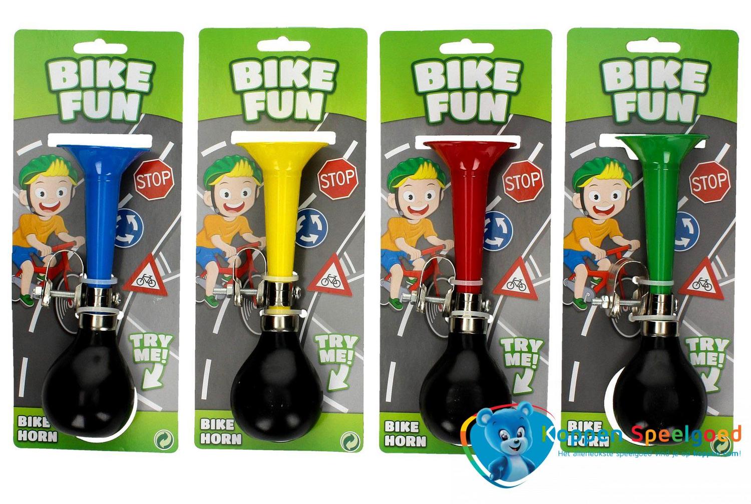 Een klassieke toeter voor echte fietspret! Deze stevige metalen fietstoeter maakt een vrolijk geluid en is eenvoudig te bevestigen aan het stuur. Onmisbaar voor iedere kleine fietser die graag opvalt!