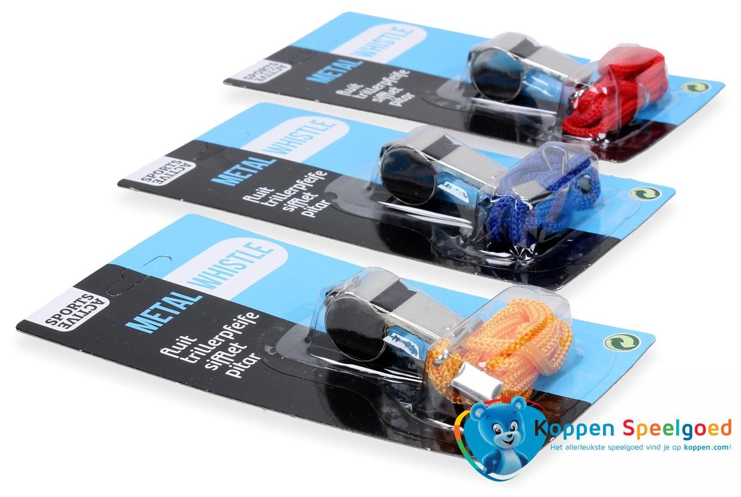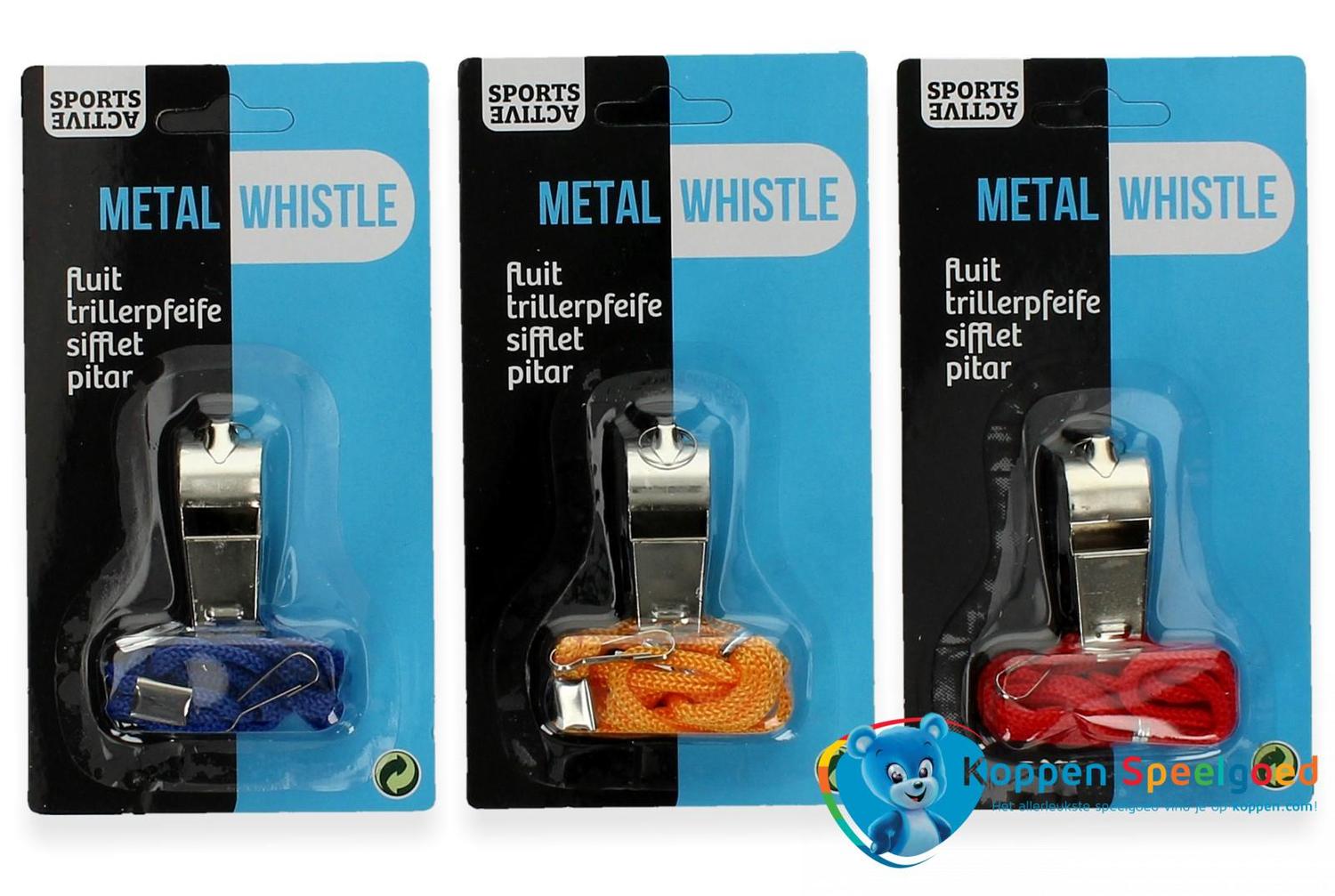 Metalen fluit met een draagkoord. Perfect voor bij het sporten!