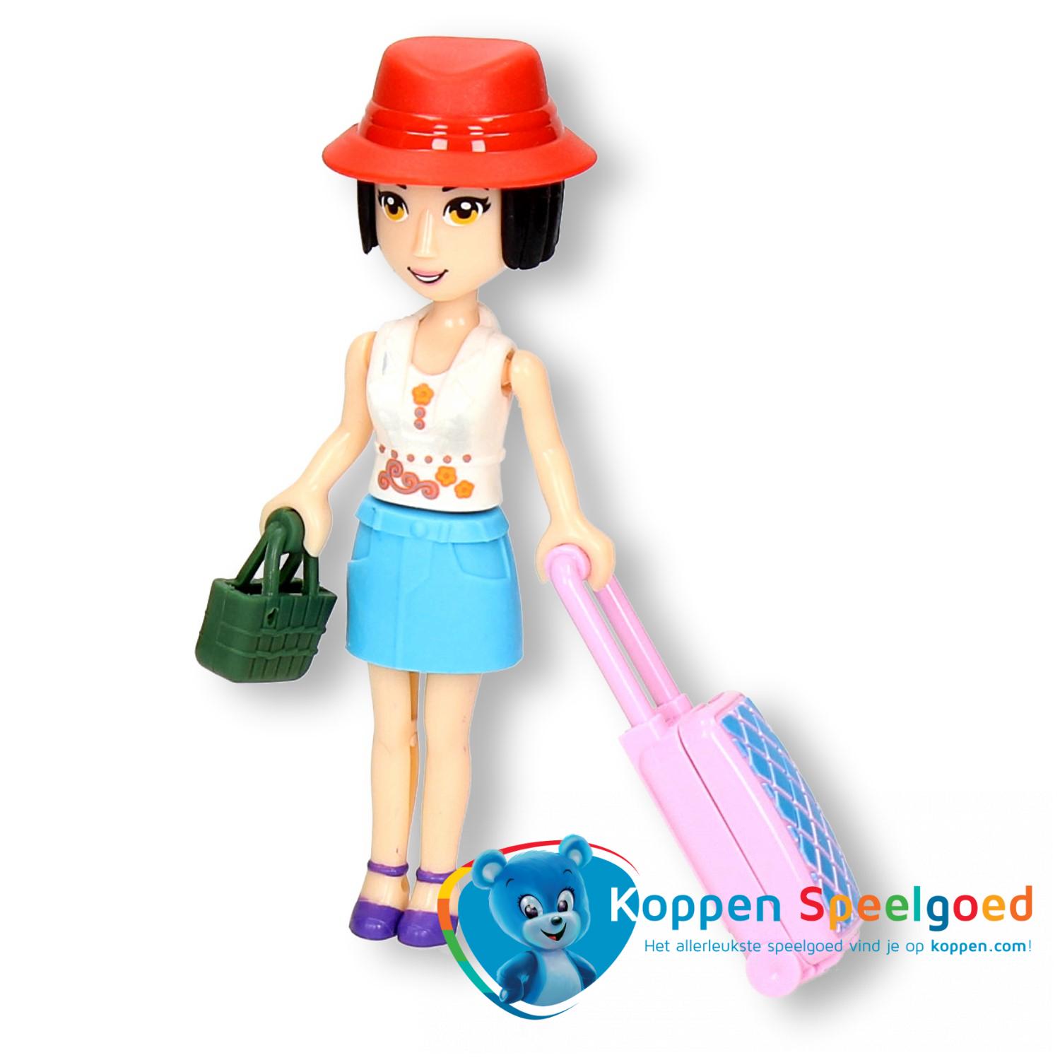 Mode poppetje. Het mode poppetje wordt geleverd met enkele accessoires. Een rolkoffer en een handtas. Bevat een plankje, zodat het makkelijk neer te zetten is. Er zijn verschillende uitvoeringen, spaar ze allemaal! Geschikt voor kinderen vanaf drie jaar.