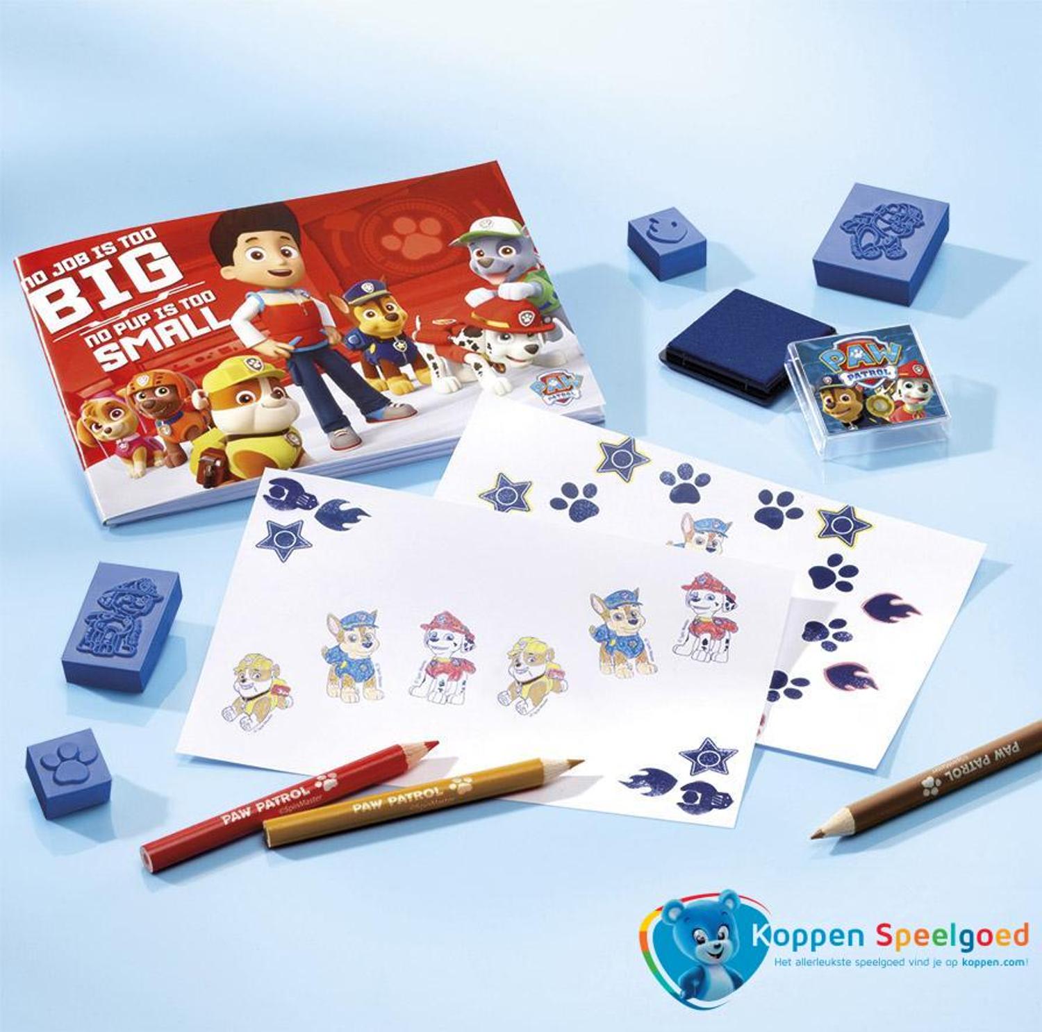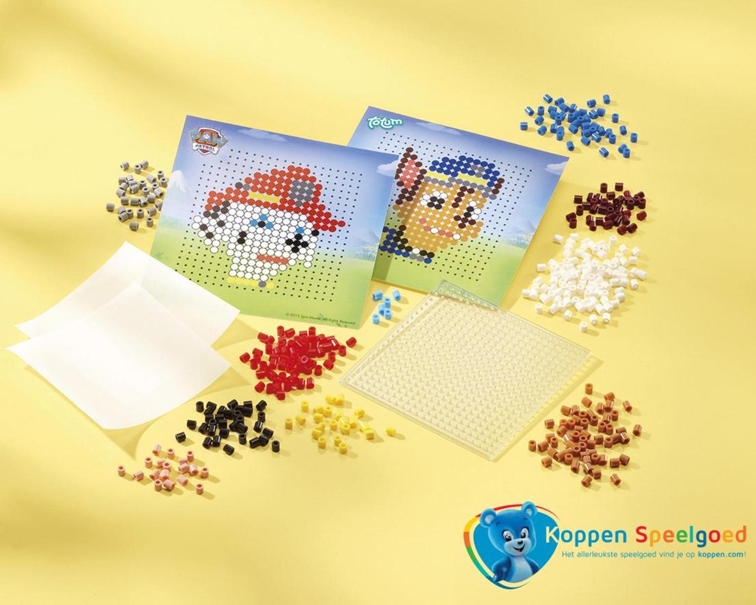 Een set met twee creatieve bezigheden in een: maak iets moois met stempels en met strijkkralen. Bevat 7 stempels van Paw Patrol, 5 kleurpotloden, een notitieblokje, inktkussen, strijkkralen, patroonvel, strijkkralenonderplaat, strijkpapier en instructies.